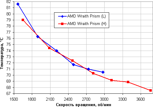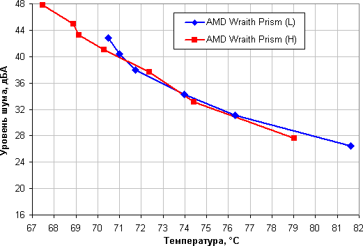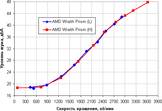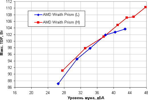 Наше тестирование показало, что кулер AMD Wraith Prism можно использовать с процессорами, имеющими реальное потребление порядка 85 Вт, при этом даже с учетом возможного повышения температуры внутри корпуса до 44 °C и при условии максимальной нагрузки все равно будет сохраняться очень низкий уровень шума — 25 дБА и ниже. Подняв скорость вращения вентилятора, предел мощности можно увеличить до 110 Вт, но уровень шума при этом превысит комфортное значение. К достоинствам кулера следует отнести аккуратный дизайн, декоративную оплетку кабеля, габариты, не препятствующие установке модулей памяти, и, конечно, многоцветную и многозонную статичную или динамичную подсветку полоски и логотипа на кожухе и крыльчатки вентилятора.