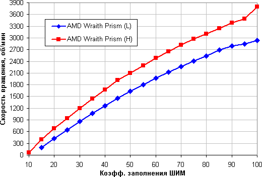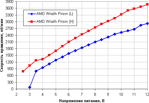 Диапазон регулировки также широкий. Вентилятор останавливается при снижении напряжения до 2,1/2,7 В и запускается от 2,2/2,9 В (режимы H/L).