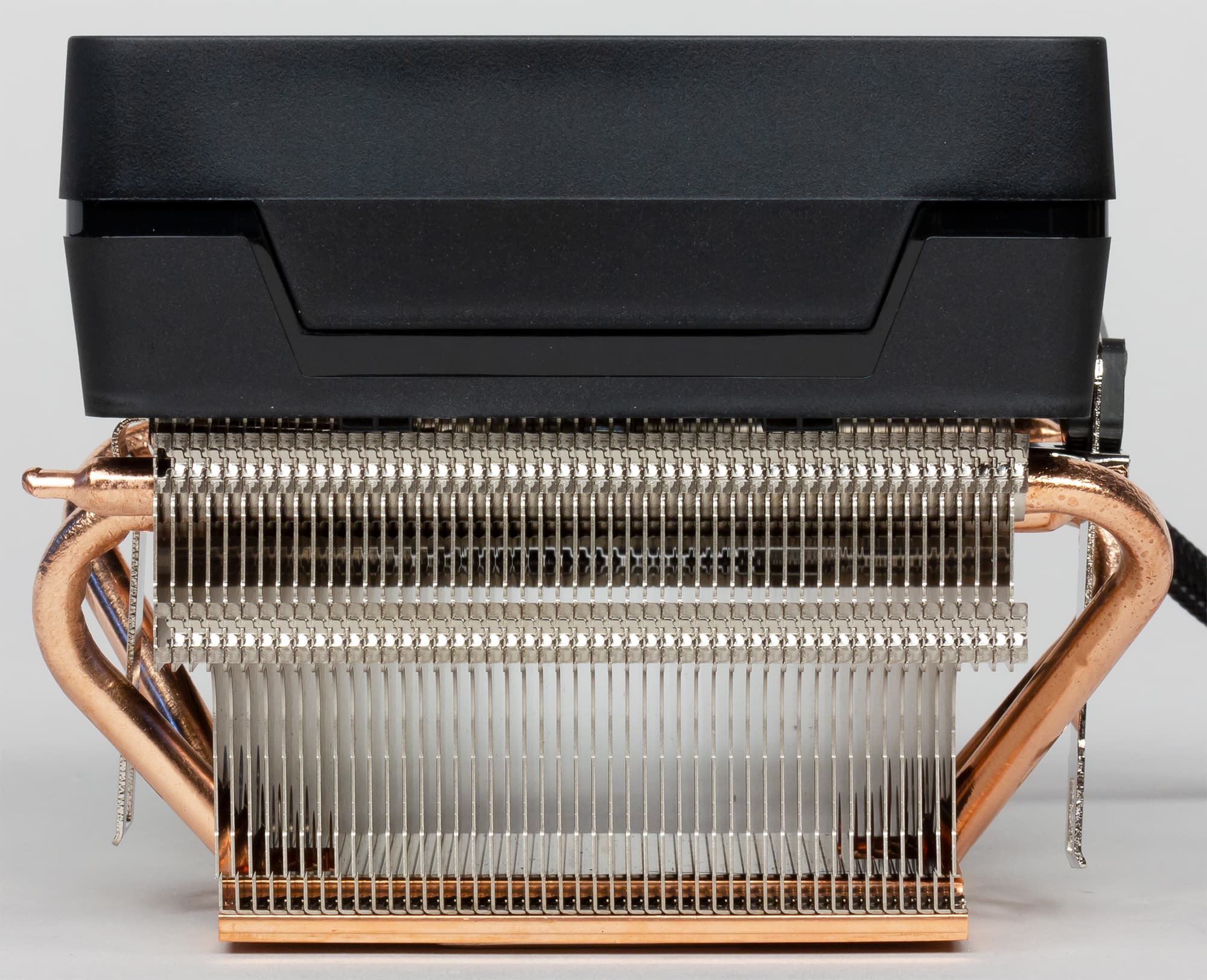 Толщина ребер равна 0,4 мм. Высота радиатора от нижней плоскости подошвы до верхушки ребер равна 61 мм, а до выреза под планки памяти — 29 мм.