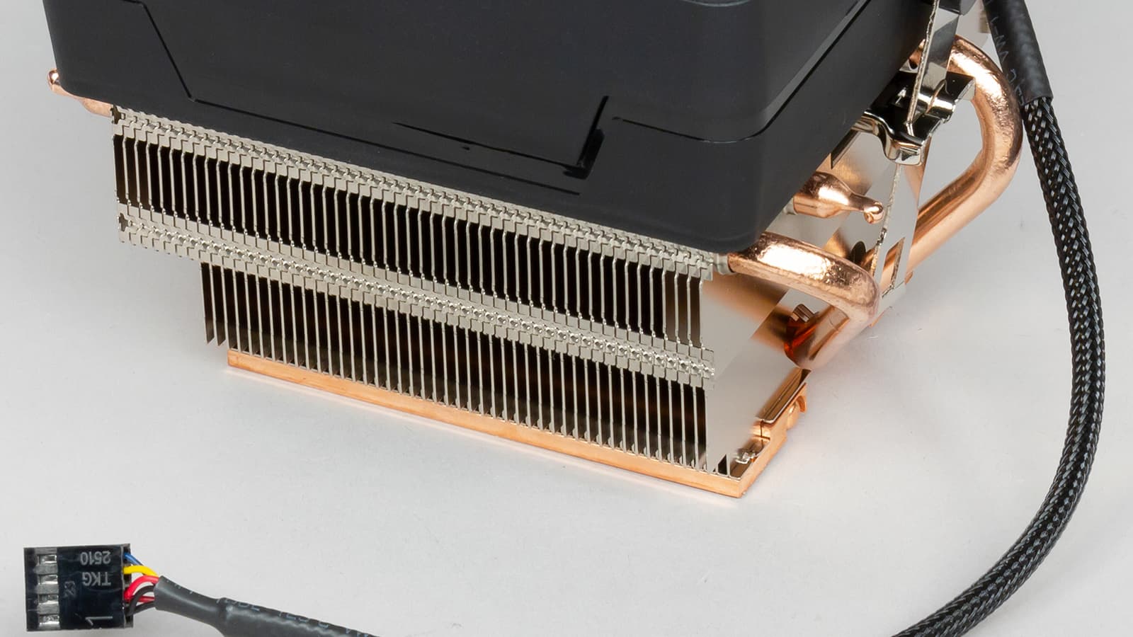 Радиатор представляет собой связанные в единую конструкцию подошву из толстой медной пластины, четыре тепловые медные трубки и ребра, изготовленные из никелированного алюминия.