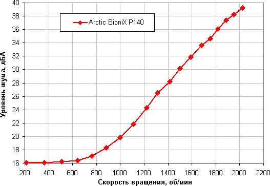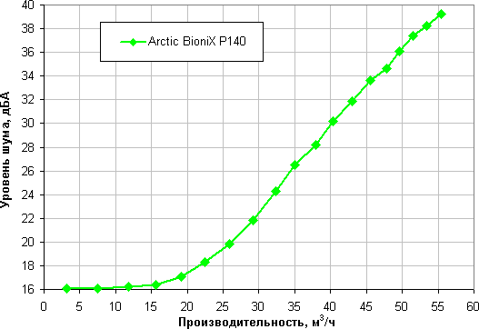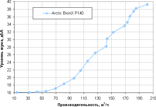 Видно, что по этому параметру вентилятор Arctic BioniX P140 один из лучших.