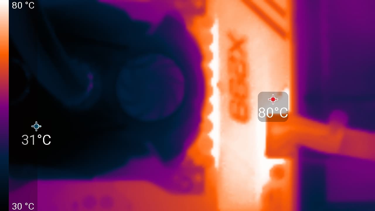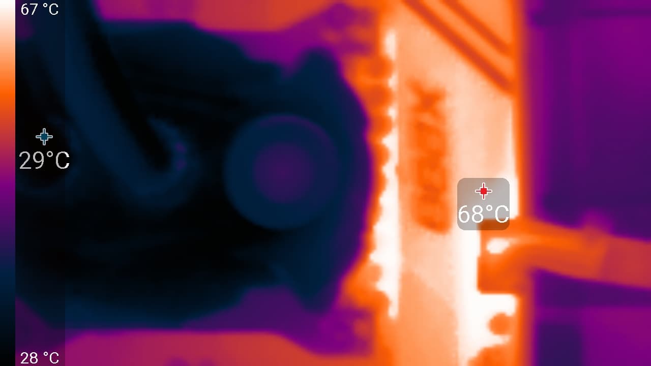 Проведем практический тест. Сначала заблокируем вентилятор на помпе, и хорошо прогреем VRM (описание нагрузки есть ниже). Потом снимем блокировку и через несколько минут посмотрим, насколько снизится температура радиатора VRM: