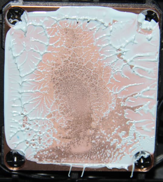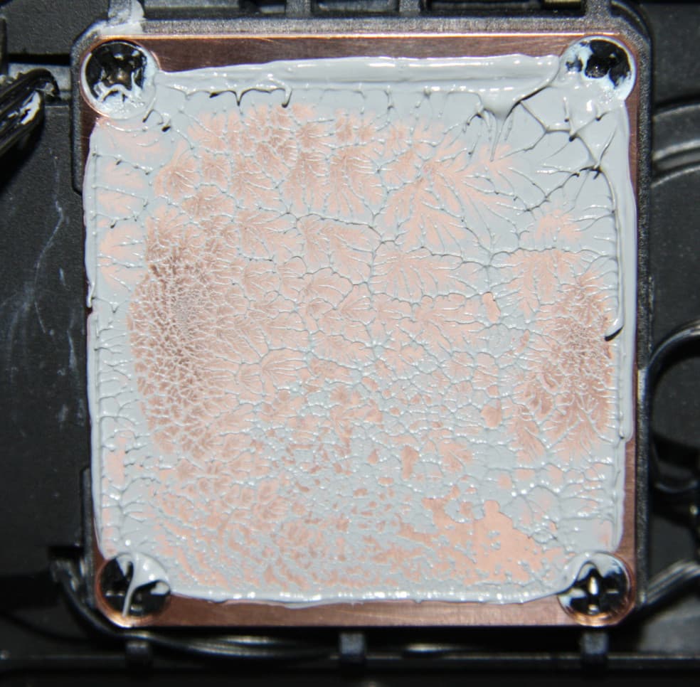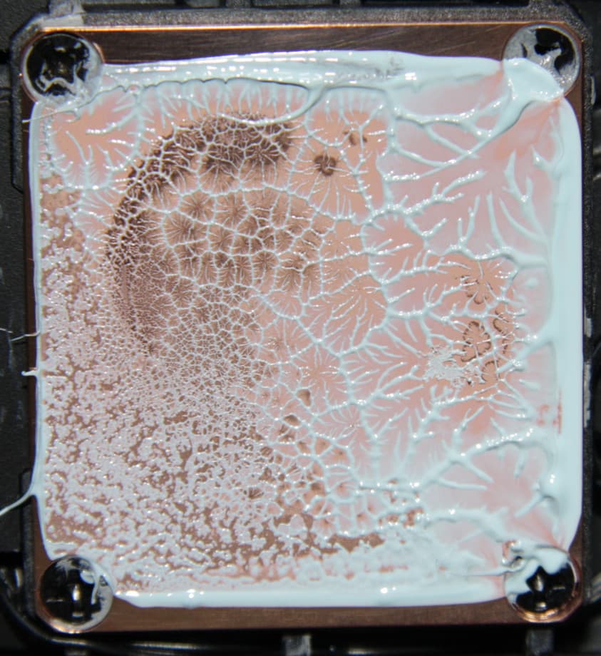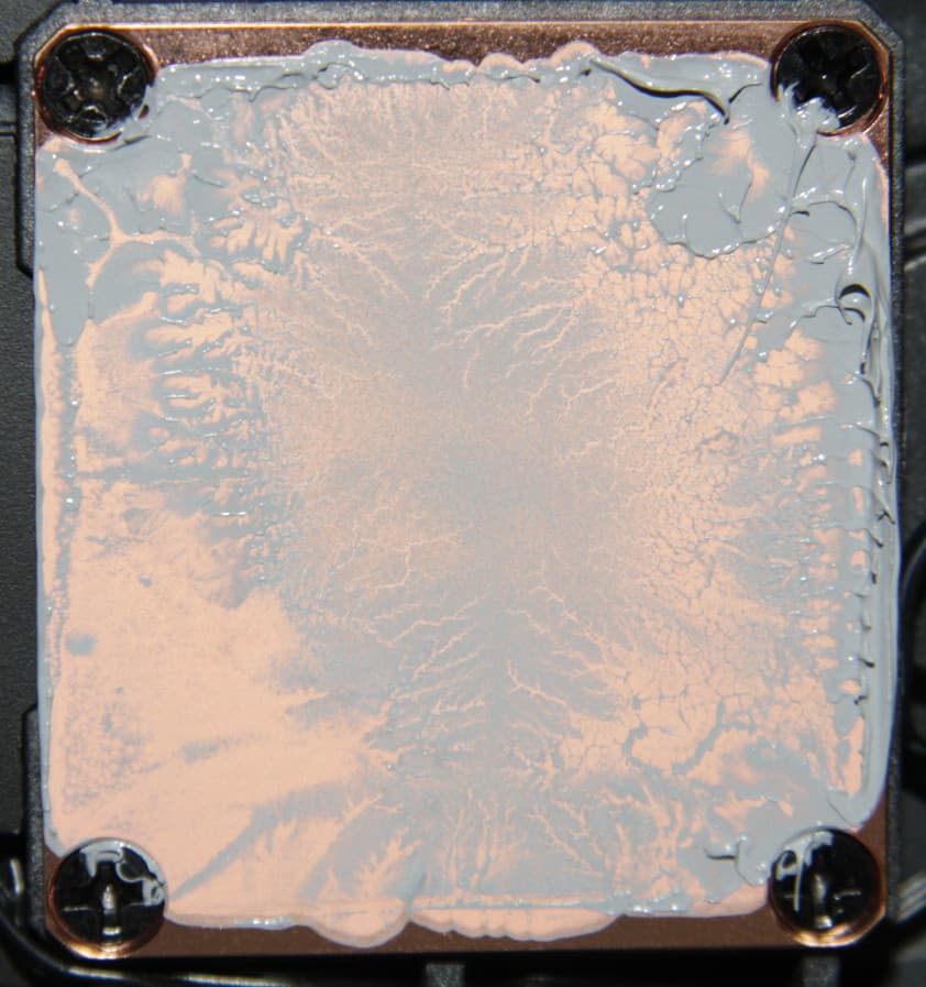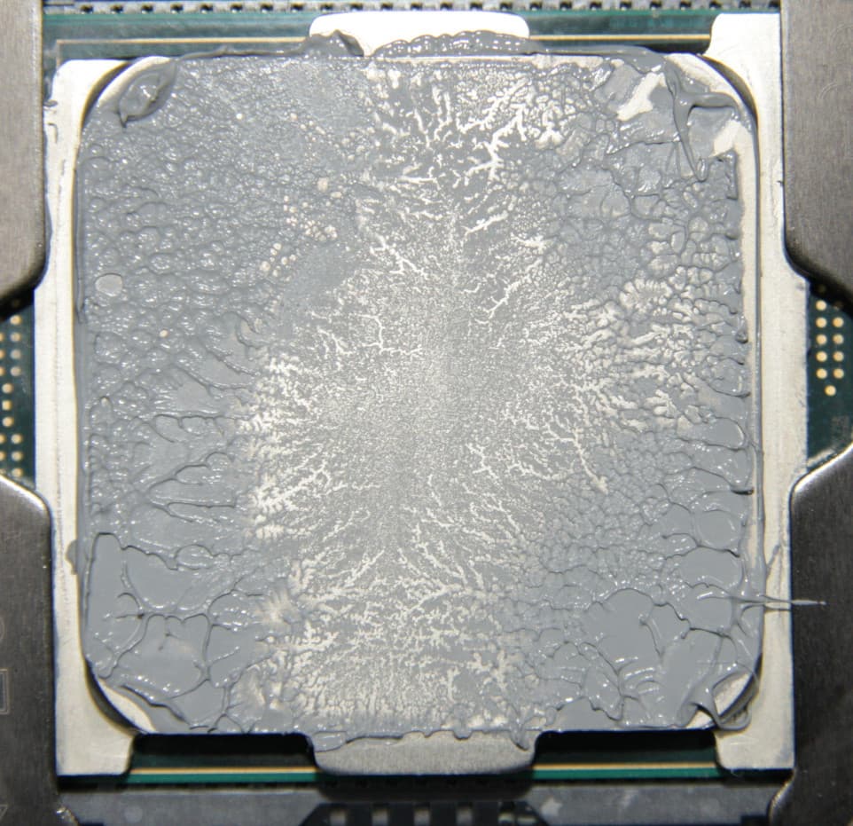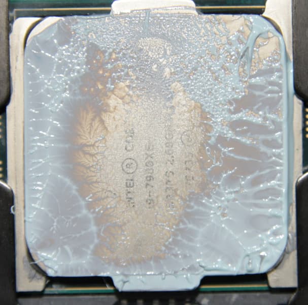 Забегая вперед, продемонстрируем распределение термопасты после завершения всех тестов. На процессоре Intel Core i9-7980XE: