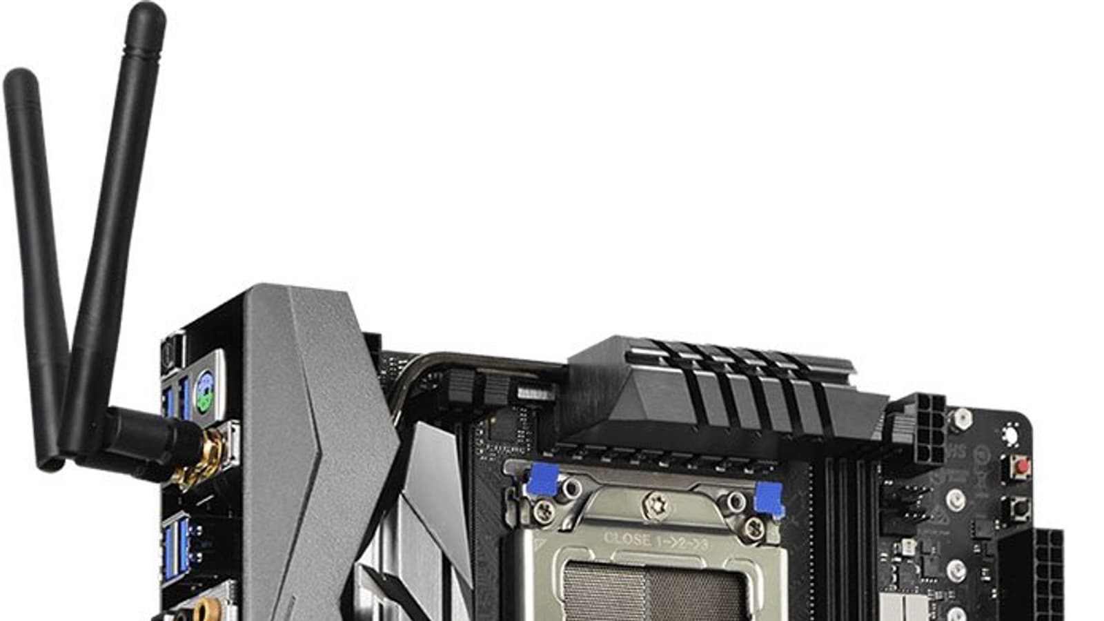 Система питания процессора основана на ШИМ-контроллере International Rectifier IR35201 и включает в себя 11 фаз: восемь для питания процессорных ядер и три для «периферии» SoC. Во всех (что привычно) используются интегрированные сборки Infineon Technologies IR3555M. Характеристики, конечно, не рекордные, но компактность платы и без того заставила инженеров активно использовать двухсторонний монтаж — все-таки сам по себе разъем процессора огромен. В любом случае, этого достаточно даже для 2990WX в штатном режиме, а «младшие» процессоры семейства можно и немного разогнать — без экстрима, который все равно плохо совместим с компактными системами.