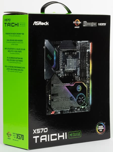 Разумеется, стоит напомнить, что у компании ASRock есть флагманская серия Taichi, есть примерно на том же уровне игровая серия Phantom Gaming. Вот наша плата относится к этой серии — ASRock X570 Taichi Razer Edition. А суффикс Razer Edition указывает на особые возможности подсветки, которая уже входит в экосистему Razer (но об этом в своем разделе).