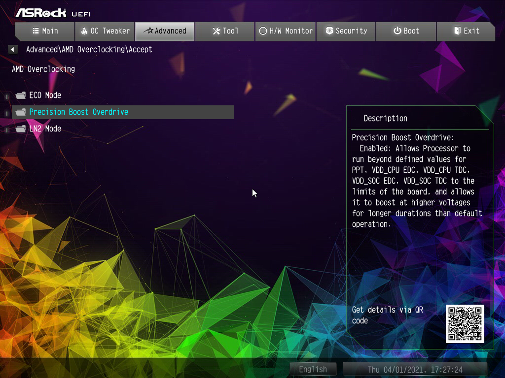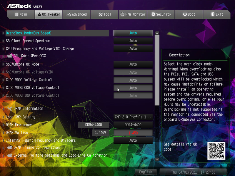 Учитывая уровень этой платы, которая основана на топовом чипсете, она должна быть готовой к работе с самым топовым на сегодня процессором (спасибо компании AMD за сэмпл) Ryzen 9 5950X. Хорошо известно, что современные технологии авторазгона от Intel (Turbo Boost) и AMD (Precision Boost) базируют свои лимиты подъема частот на информации о системе питания на той или иной матплате (сами понимаете, все контроллеры цифровые, в UEFI вся информация имеется). Также следует отметить, что данная плата от ASRock способна четко реализовать контроль за частотой IF (Infinity Fabric), держа ее не выше 1800 МГц (разумеется, если она выставлена в режиме Auto) и выставляет множитель для частоты памяти автоматически.