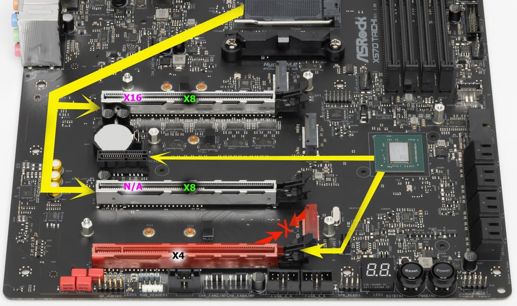 Ниже полная схема распределения ресурсов по слотам PCIe.