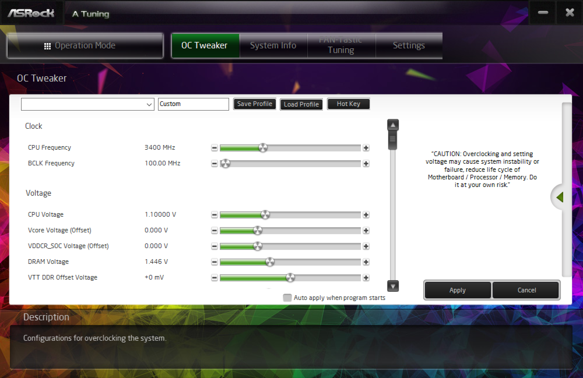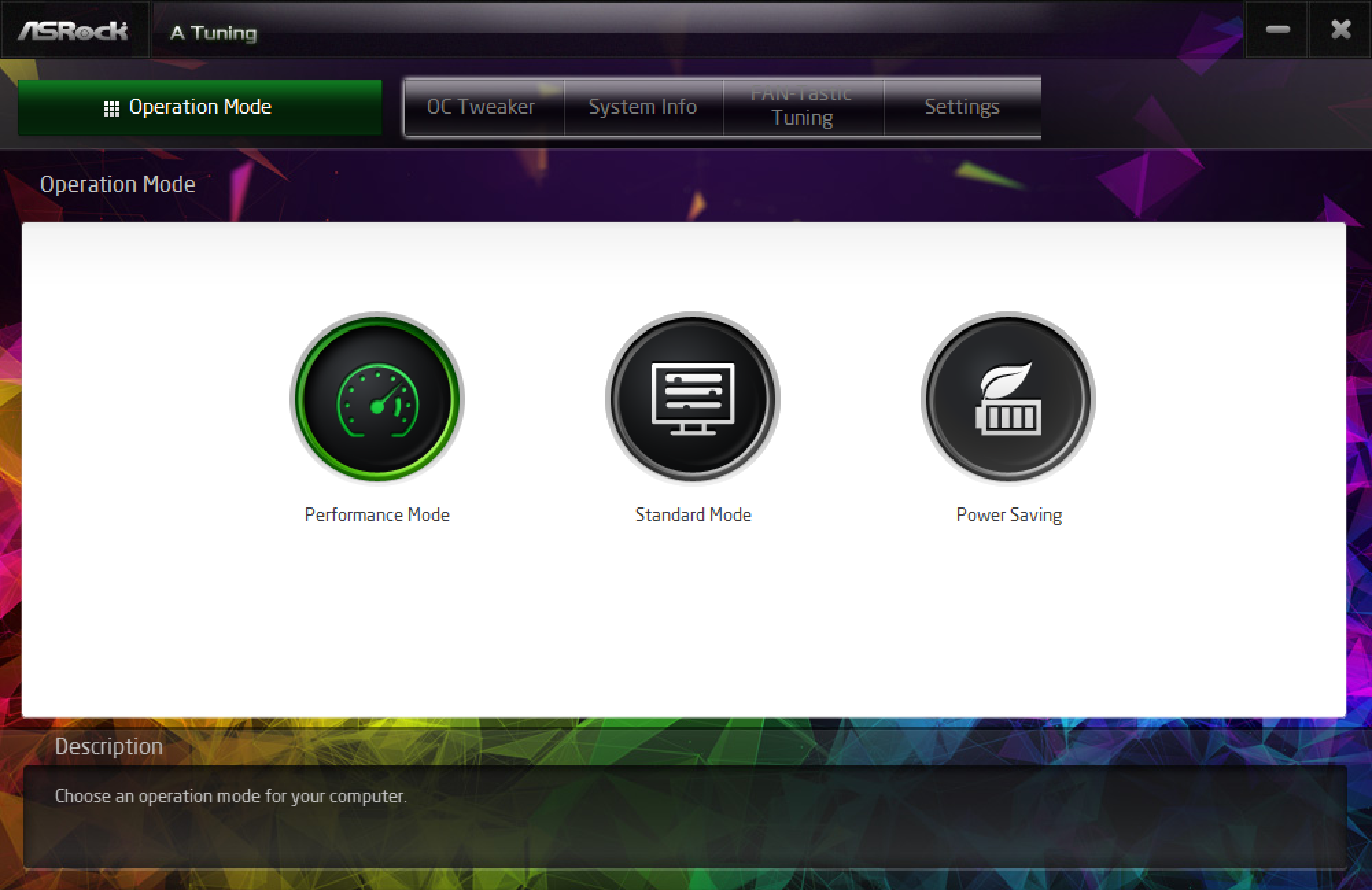 Теперь посмотрим, что нам дает фирменная программа ASRock A-Tuning, в которой можно выставить режим ОС (может она еще выше поднимет частоты?).
