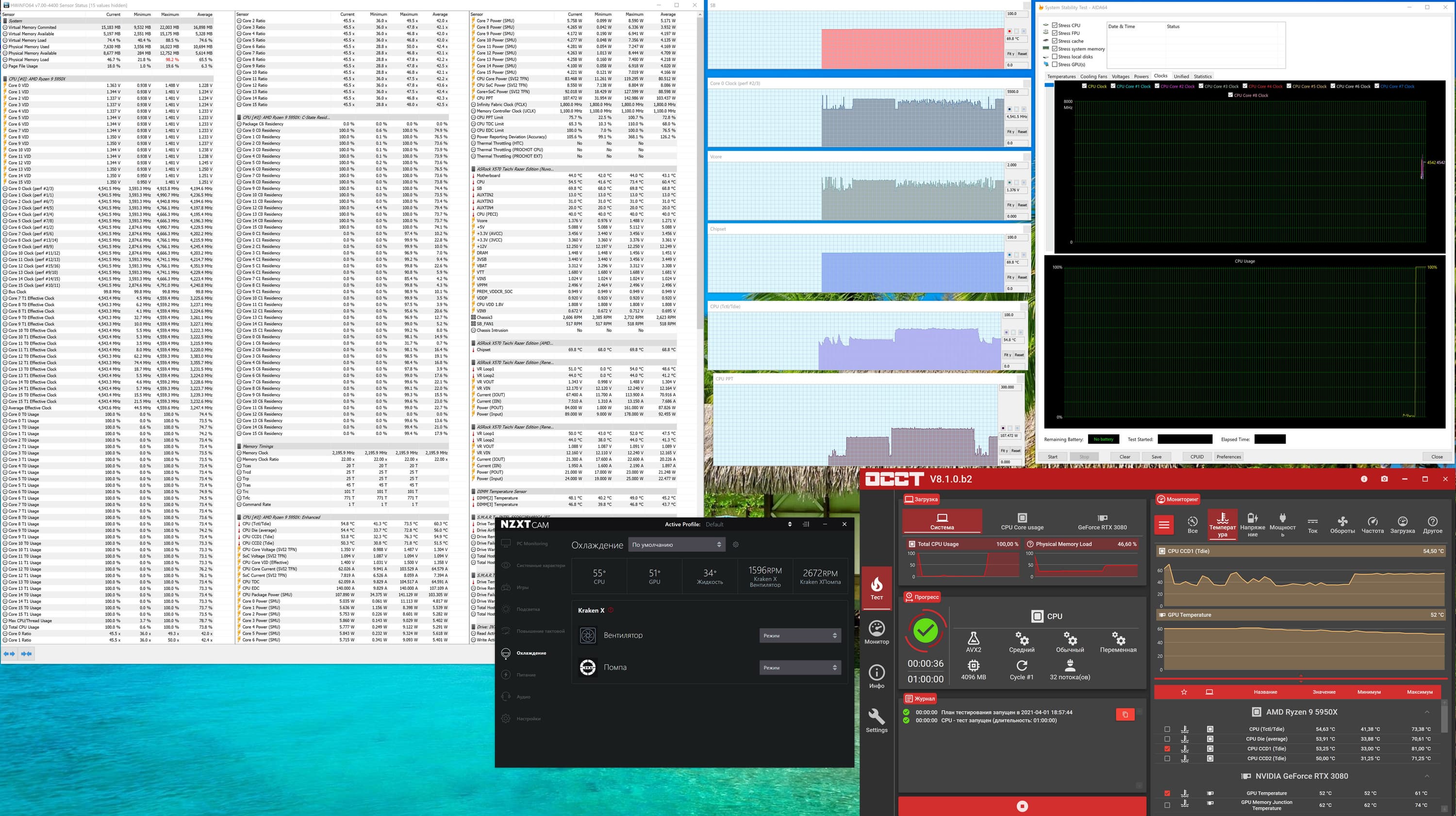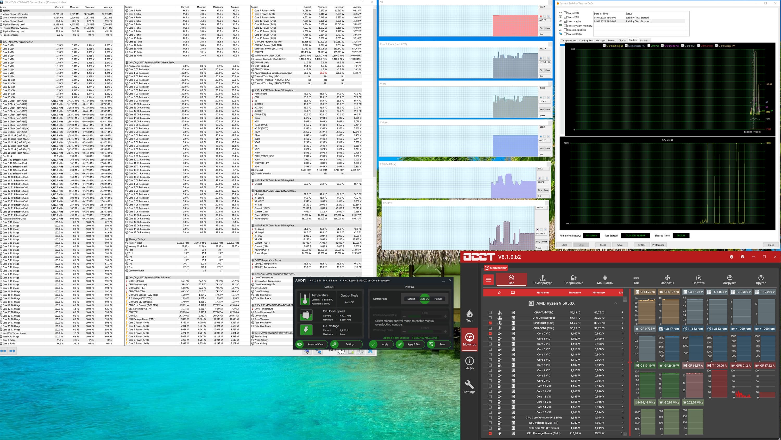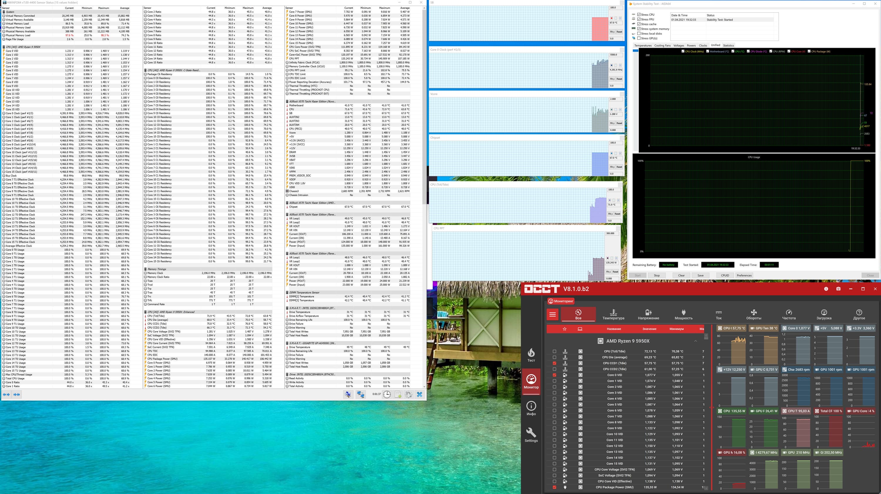 Запускаем все в режиме по умолчанию. Затем нагружаем тестами от AIDA, и OCCT.