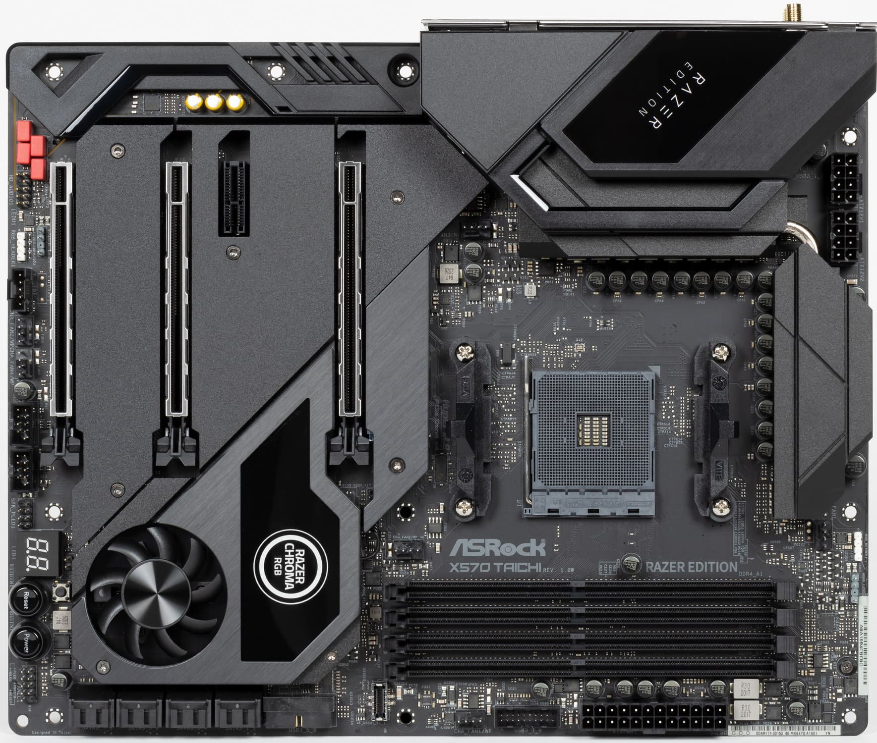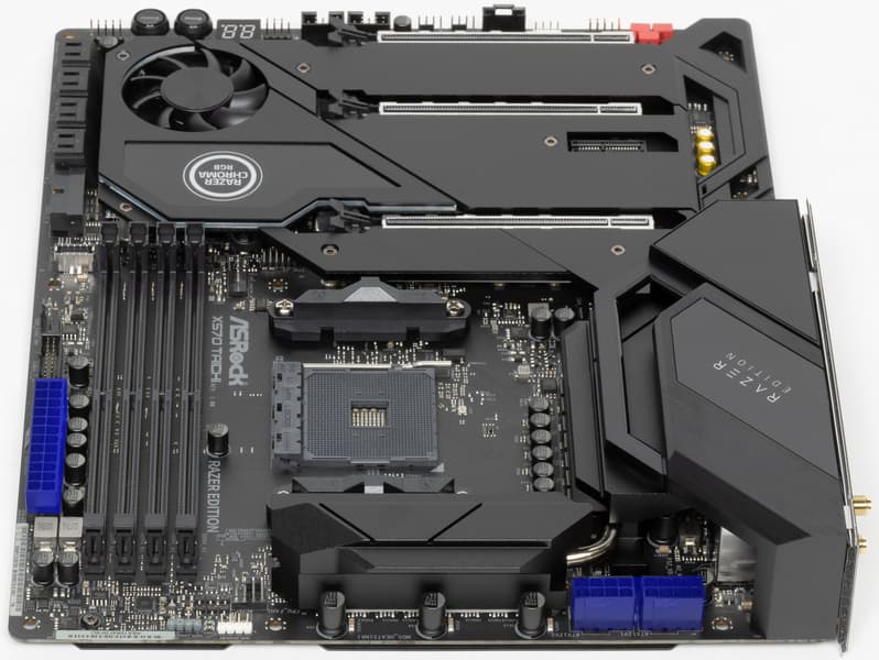 ASRock X570 Taichi Razer Edition — материнская плата на топовом чипсете, почти флагманское решение ASRock. Она имеет превосходную систему питания, что обеспечивает стабильную работу самых мощных процессоров Ryzen при очень эффективном авторазгоне в рамках AMD PBO. «Razer Edition» в названии отсылает к отличной подсветке, реализованной в рамкой экосистемы Razer.