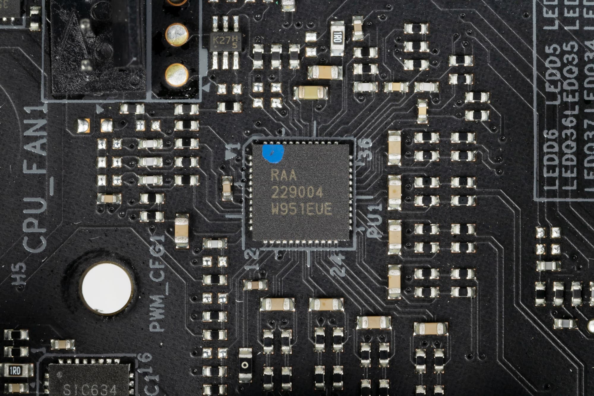 Они расположены на оборотной стороне платы (ISL6617A от того же Renesas, ex Intersil).
