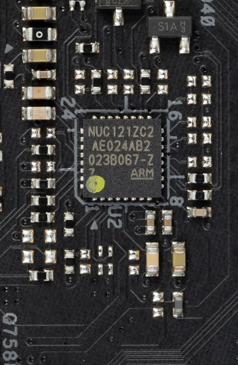 На оборотной стороне из элементов имеются некоторые контроллеры, удвоители фаз питания и мелкая логика. Обработан текстолит неплохо: во всех точках пайки острые концы срезаны. Печатная плата с задней стороны на 2/3 закрыта металлическим бэкплейтом, имеющим электроизоляционное покрытие.
