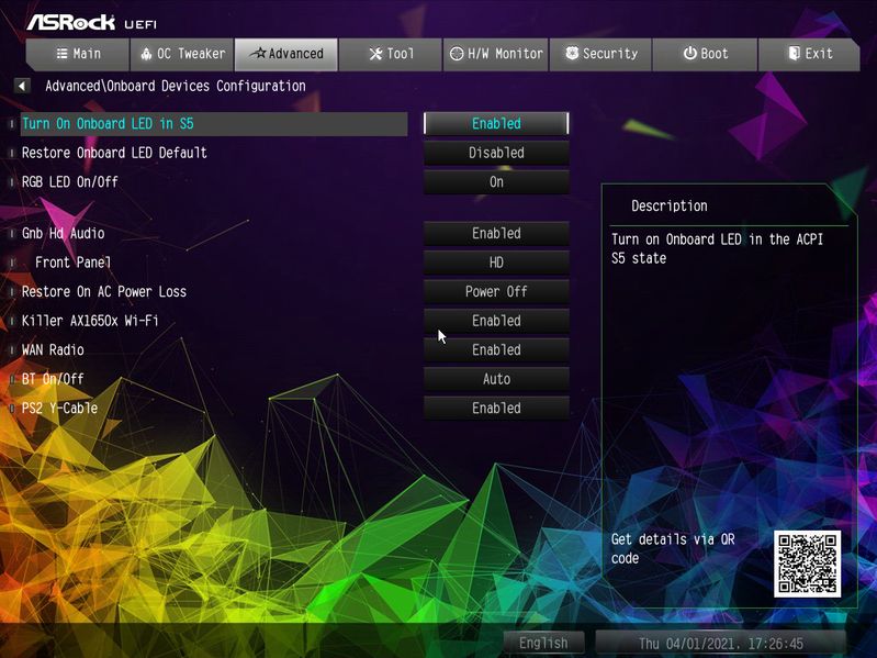 | Сетевые контроллеры | 1 × River Networks Killer E3100G (Intel I225-V) (Ethernet 2,5 Гбит/с) 1 × River Networks Killer 1650X Dual Band Wireless (Intel AX200NGW) (Wi-Fi 6: 802.11a/b/g/n/ac/ax (2,4/5 ГГц) + Bluetooth 5.0) |