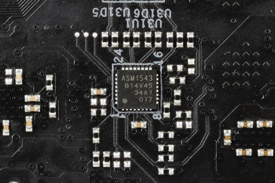 А для нужд быстрой зарядки порт Type-C на задней панели и аналогичный внутренний порт для вывода на переднюю панель имеют редрайверы от ASMedia ASM1543.