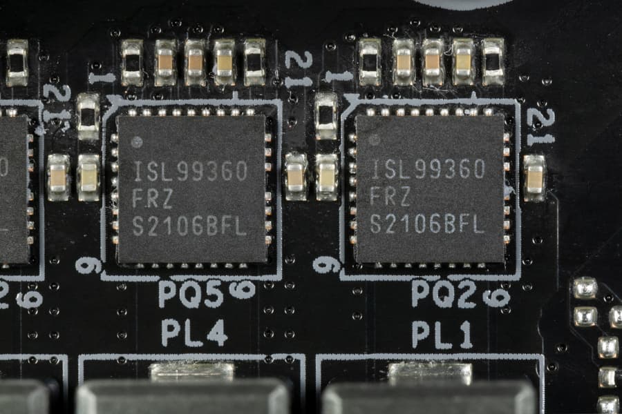 Каждая фаза VCore и SoC имеет по транзисторной сборке ISL99360 от Renesas (до 60А).