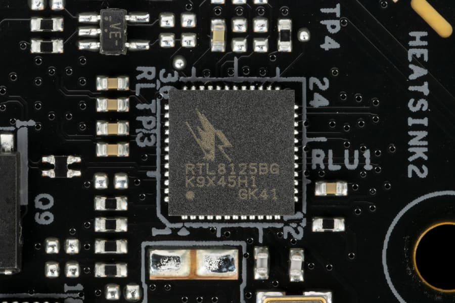 Материнская плата оснащена средствами связи хорошо. Имеется скоростной Ethernet-контроллер Realtek RTL8125BG, способный выдавать до 2,5 Гбит/с.