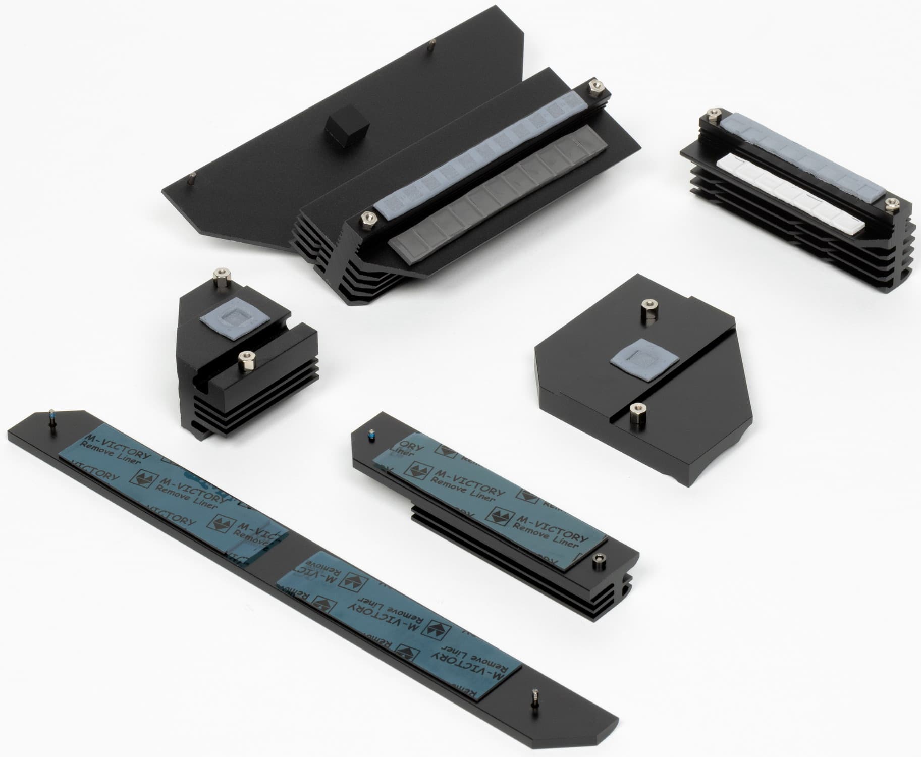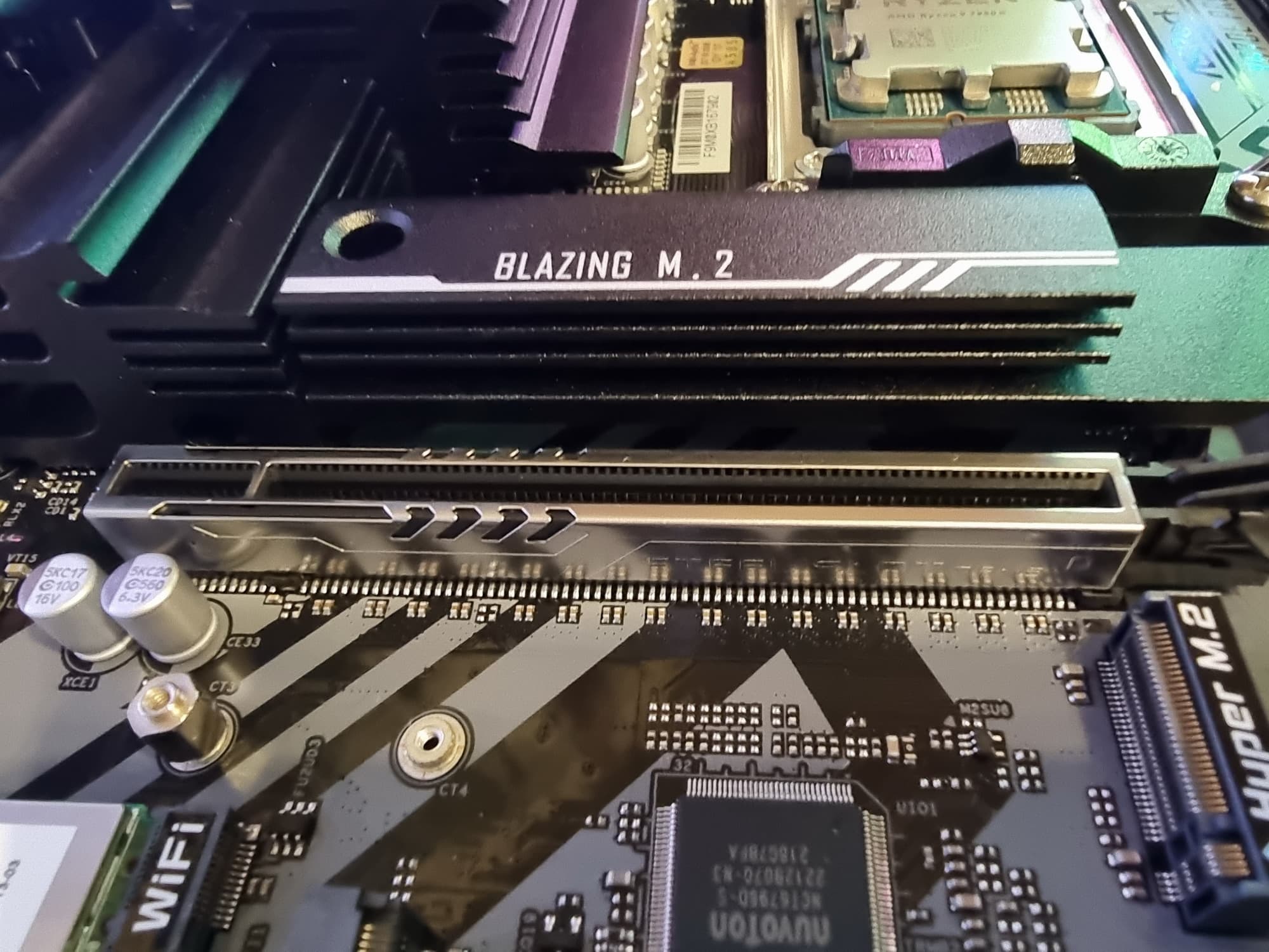 У трех из пяти слотов M.2, как я уже выше отмечал, есть свои радиаторы с термоинтерфейсом. У верхнего — свой отдельный радиатор, у двух нижних — общий.