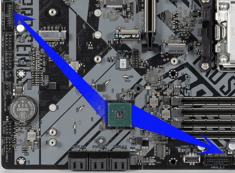 - 8 портов USB 3.2 Gen1: 7 реализованы через X670E и 4 из них представлены двумя внутренними разъемами на материнской плате (каждый на 2 порта); еще 3 представлены на задней панели 3 портами Type-A (синие); 1 порт реализован через CPU и также представлен на задней панели портом Type-A (синий);