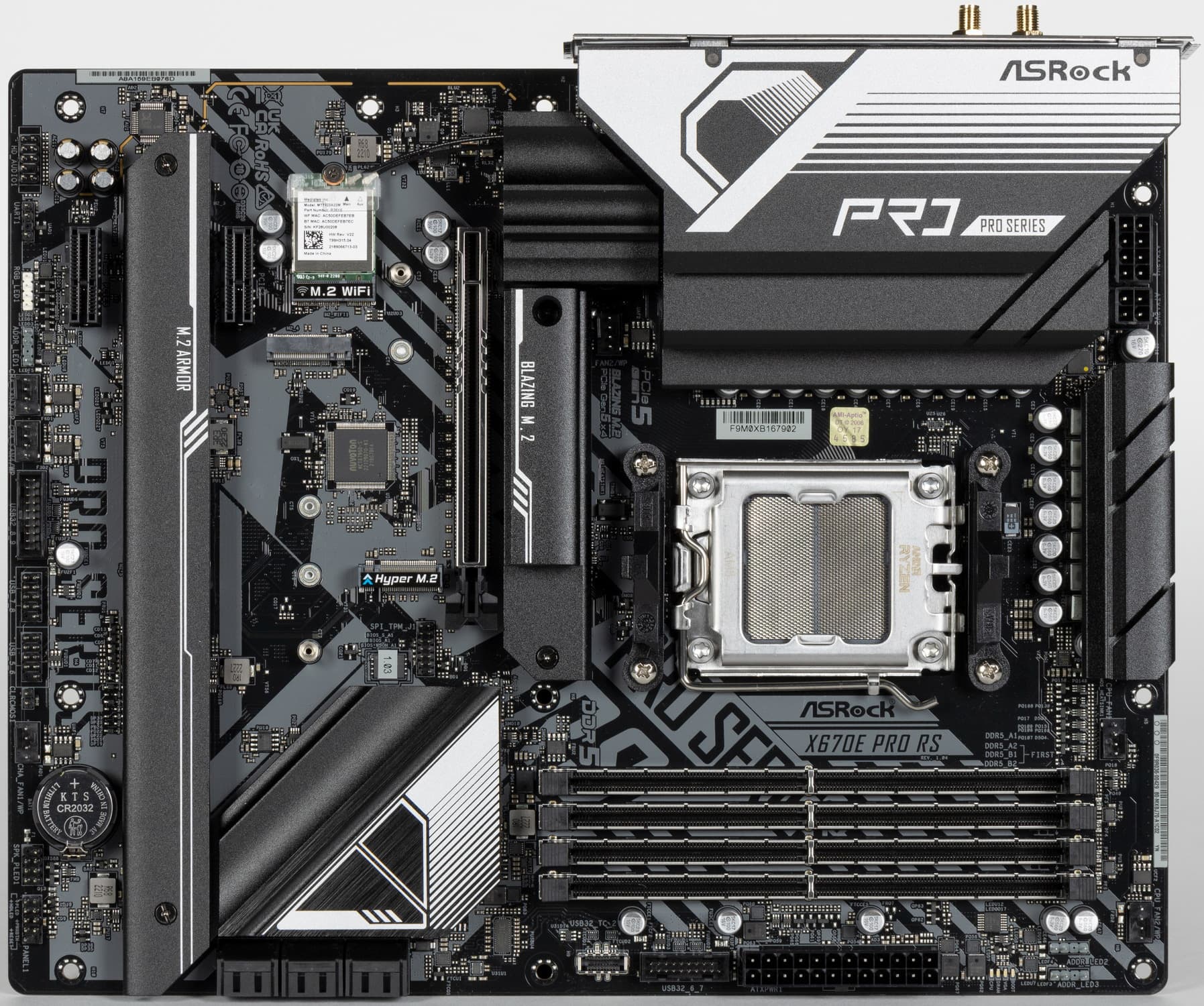Материнская плата ASRock X670E Pro RS — добротный и интересный представитель серии Pro для процессорного разъема AM5 со стоимостью от 25 тысяч рублей (на момент публикации обзора). По сути, это одна из самых дешевых моделей на базе AMD X670E. Плата поддерживает процессоры AMD Ryzen 7000 и создана для домашних и рабочих ПК, но может понравиться и геймерам.