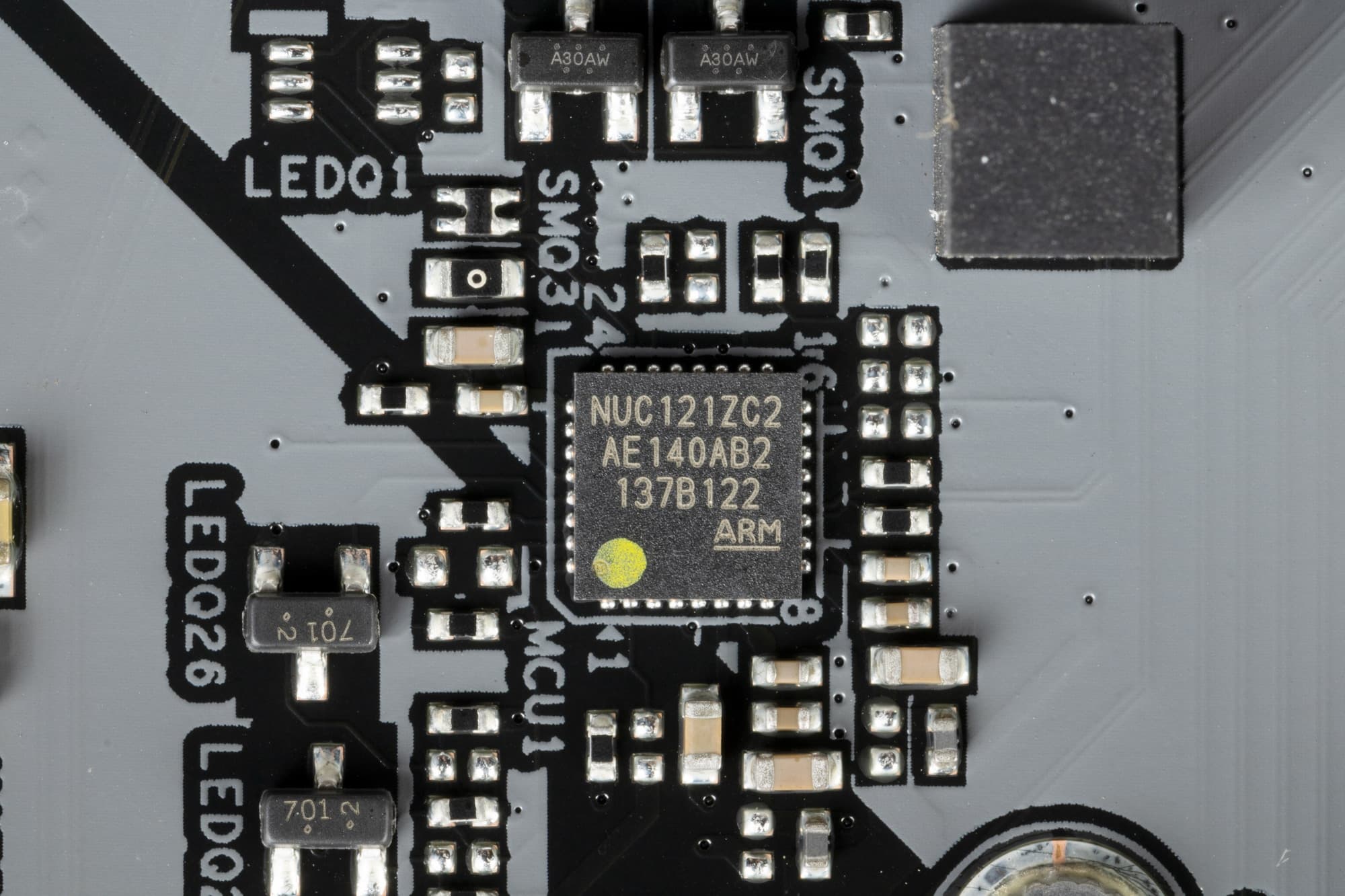 На оборотной стороне почти ничего нет. Текстолит обработан хорошо: во всех точках пайки не только острые концы срезаны, но и все неплохо отшлифовано. Бэкплейта нет.