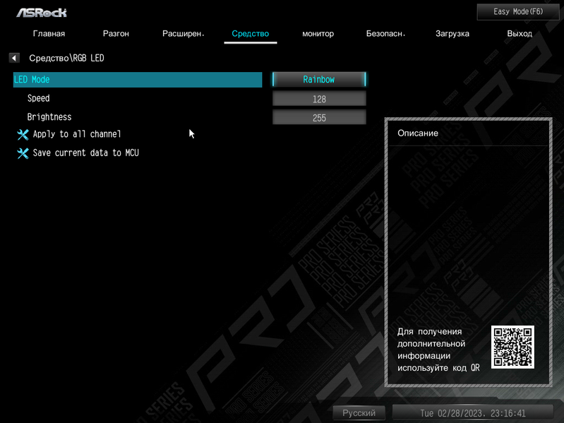 В арсенале этой модели также есть 6 портов SATA и 6 разъемов для вентиляторов. Система питания процессора мощная, плата имеет грамотную систему охлаждения почти каждого потенциально греющегося элемента, но для 2 из 5 накопителей в слотах M.2 радиаторы не предусмотрены. Сетевые возможности хорошие: один проводной контроллер 2,5 Гбит/с и один самый современный беспроводной. В числе плюсов платы можно упомянуть подсветку радиатора чипсета, а также широкие возможности для подключения дополнительных RGB-устройств.
