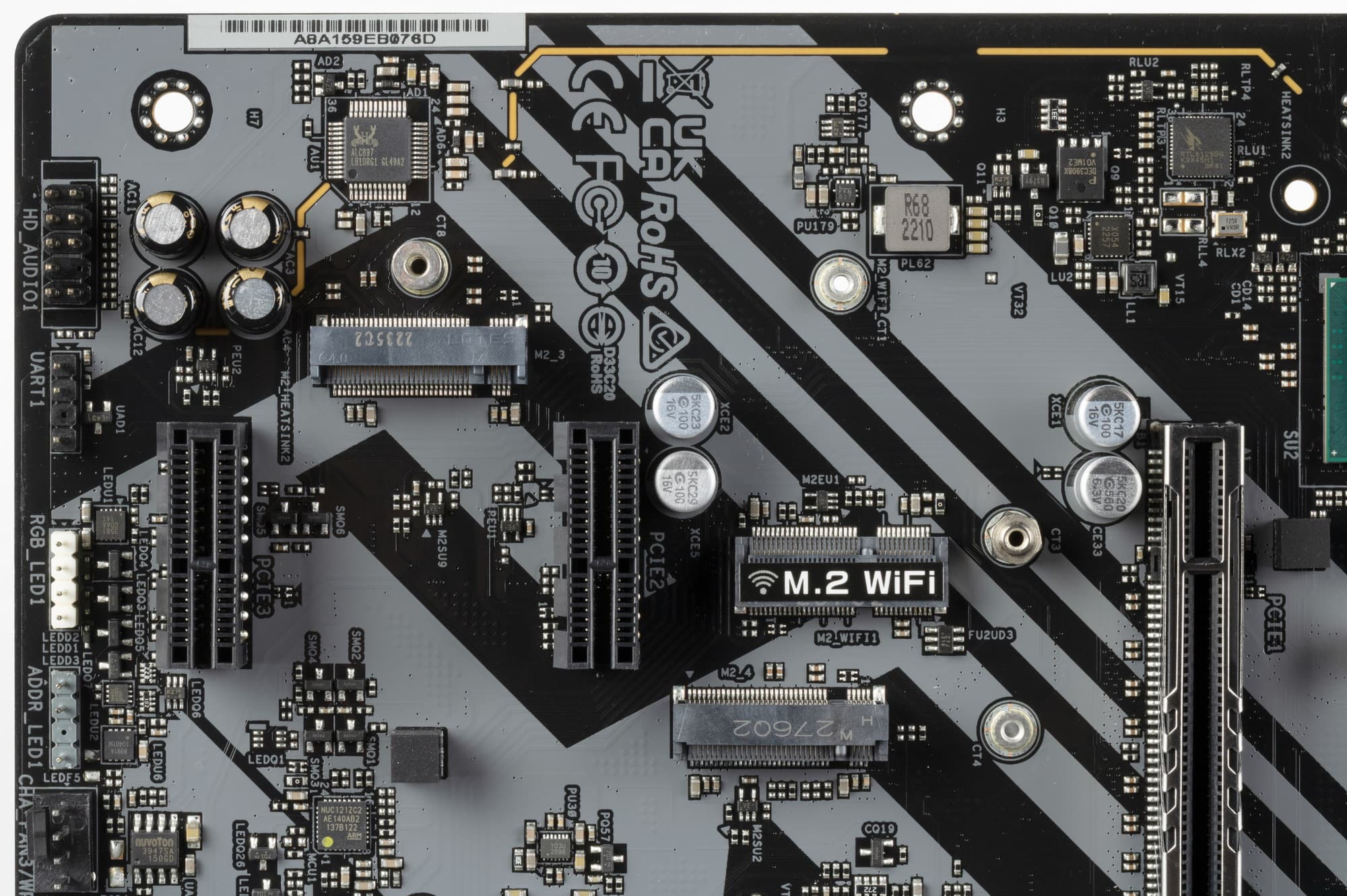 Слот М.2_4 поддерживает версию PCIe 3.0 и работает с модулями с любым интерфейсом, остальные слоты функционируют только с накопителями с PCIe интерфейсом. Слоты M.2_2, M.2_3, M.2_5 поддерживают версию PCIe 4.0, а M.2_1 – PCIe 5.0.