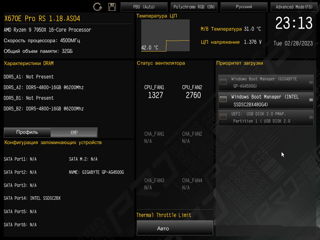 Новое поколение Ryzen 7xxx поддерживает как традиционные уже модули памяти DDR5 c Intel XMP (Extreme Memory Profile), так и модули с проприетарным от AMD профилем Expo.