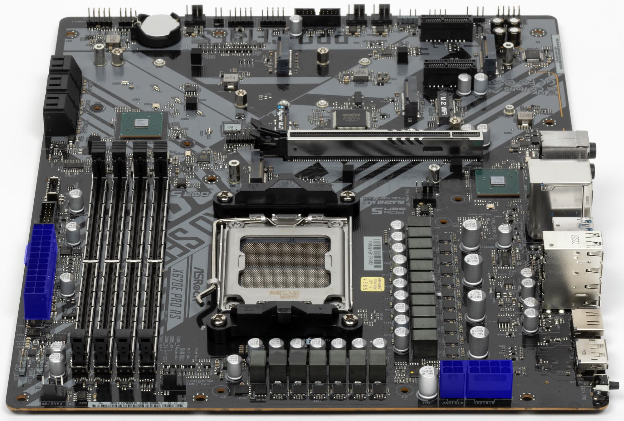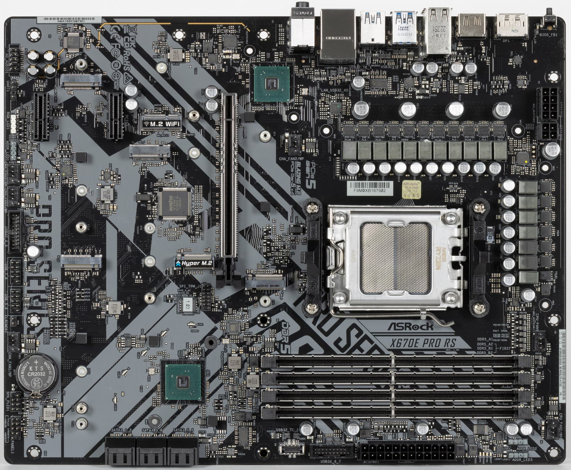 Стоит снова напомнить, что у ASRock имеется несколько серий материнских плат: флагманская Taichi, игровая Phantom Gaming и серия Pro. Малобюджетные продукты идут без серий. Серия Pro – это некий аналог рабочих серий у иных производителей, например, Asus Prime, Gigabyte Aero и т.д. В эту серию входят матплаты для неигровых ПК, включая очень простые рабочие станции. Вот наша сегодняшняя плата относится к этой серии — ASRock X670E Pro RS, базируемая на AMD X670E (чем X670E отличается от X670 — напомню ниже). То есть по сути матплата на топовом чипсете относится к среднебюджетным продуктам.