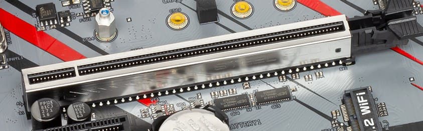 Слоты PCI-E x16 имеют металлические «оболочки» и дополнительные точки пайки — это призвано увеличить срок службы слотов. Дело в том, что современные мощные видеокарты могут быть весьма тяжелыми, а держателями-подставками свои видеокарты комплектуют только пара производителей.