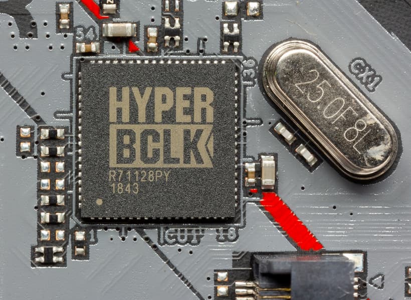 На материнской плате имеется дополнительный тактовый генератор — на случай, если пользователь захочет осуществить разгон процессора с заблокированным множителем за счет поднятия частоты шины. В настройках BIOS Setup на этот случай имеются всевозможные комбинации соотношений частот шин, памяти и пр., однако, как пишут многие, современные процессоры плохо поддаются такому разгону.