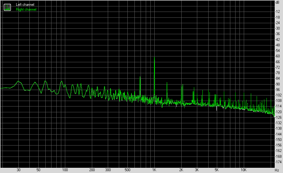 Для тестирования выходного звукового тракта, предназначенного для подключения наушников или внешней акустики, мы использовали внешнюю звуковую карту Creative E-MU 0202 USB в сочетании с утилитой RightMark Audio Analyzer 6.4.5. Тестирование проводилось для режима стерео, 24-бит/44,1 кГц. По результатам тестирования аудиотракт на плате получил оценку «Хорошо».