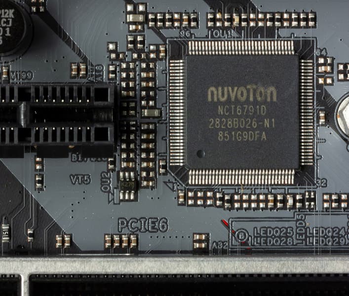 Для всех этих целей (мониторинг, Multi I/O) имеется контроллер NCT6791D от Nuvoton.