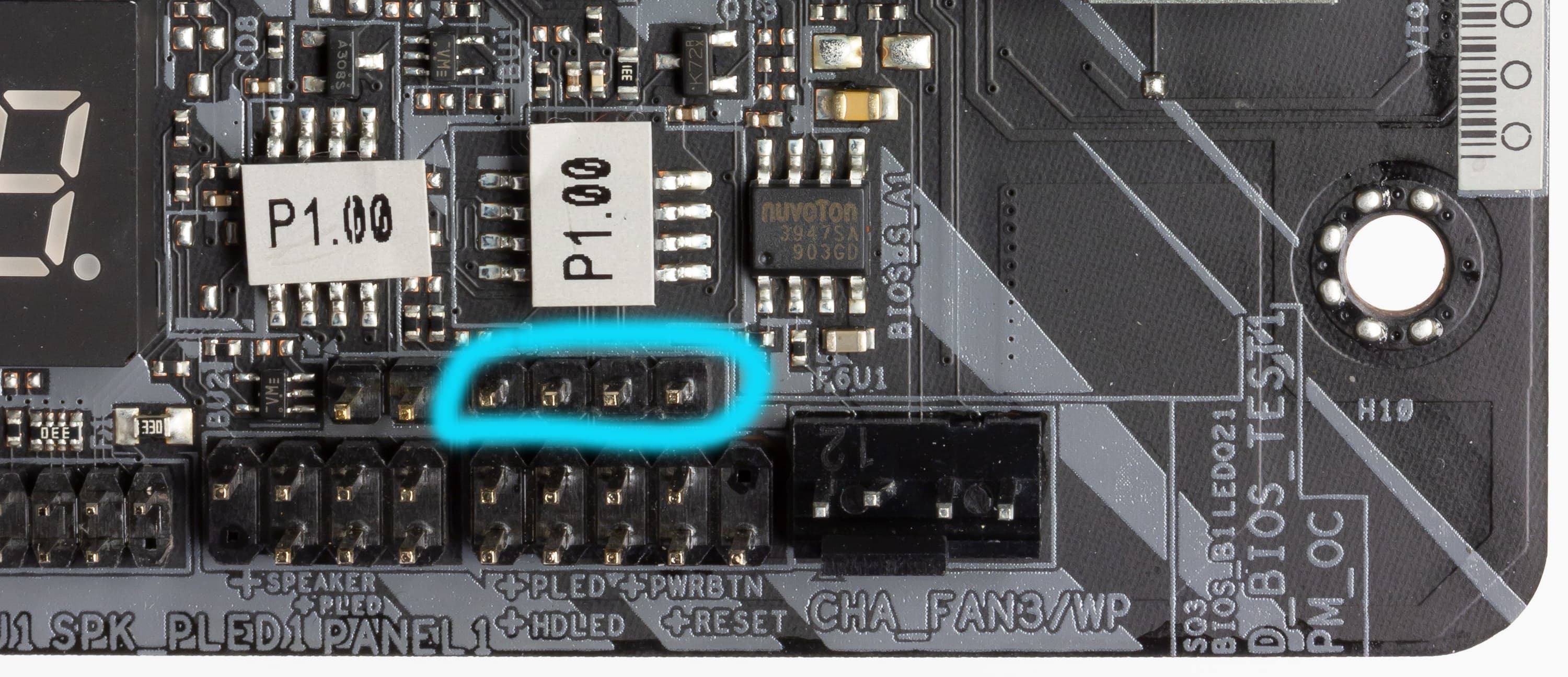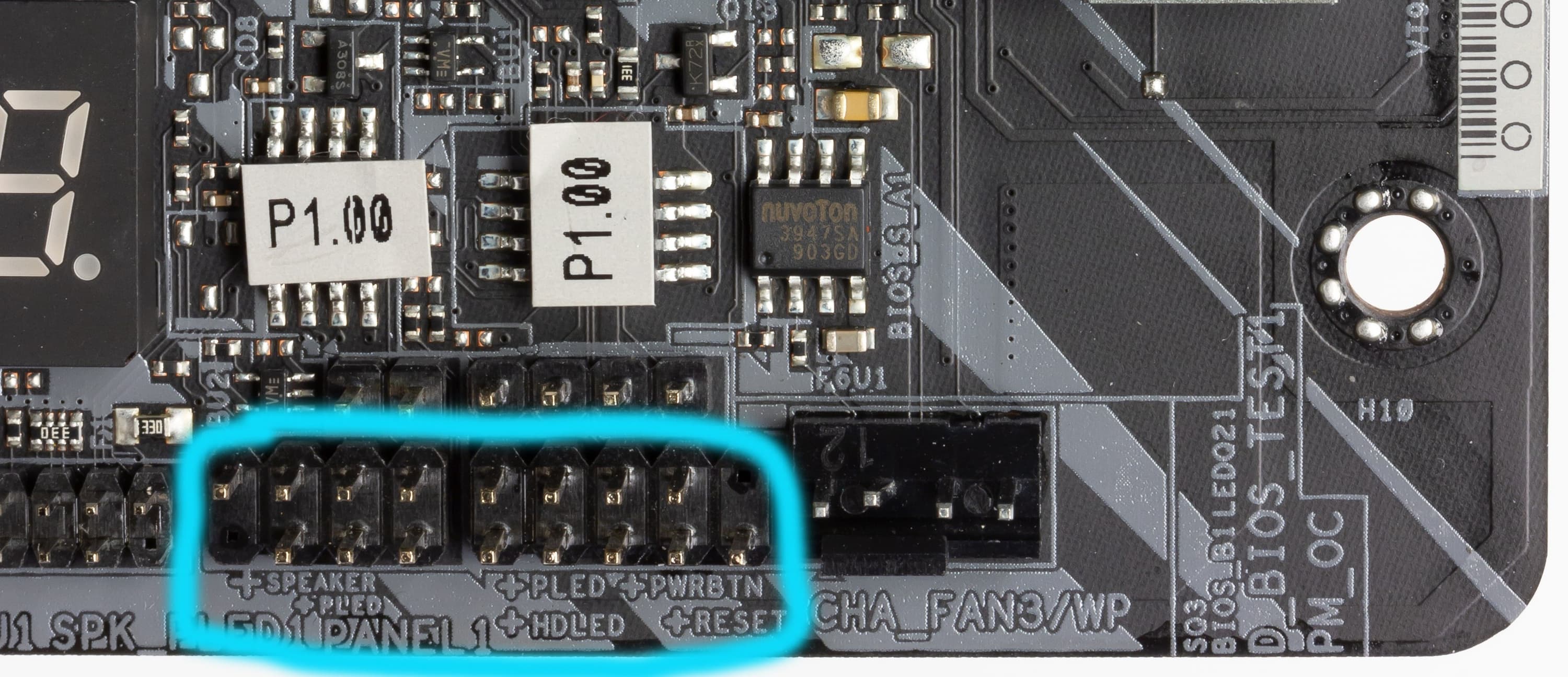 Разумеется, есть и традиционный набор штырьков FPanel для подключения проводов к передней (а сейчас уже часто и верхней или боковой или все это сразу) панели корпуса.