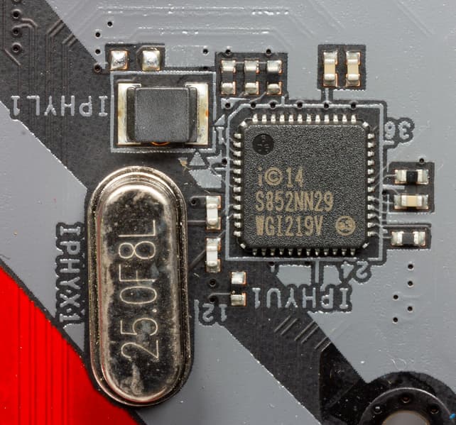 Традиционно поддерживаемый системным чипсетом сетевой гигабитный контроллер Intel GigaPHY i219V нашел свое место и на этой плате.