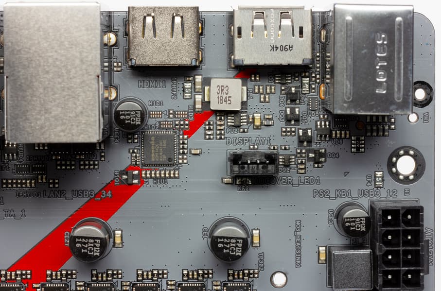 Заканчивая с задней панелью, хотелось по традиции сказать, что еще имеются стандартные видеовыходы HDMI 1.4 и Display Port 1.2 — на случай, если вы захотите использовать встроенное видеоядро, имеющееся у абсолютного большинства современных процессоров Intel. В помощь этому предназначен чип ASM1442 от ASMedia, который преобразует сигнал TMDS для поддержки стандарта 4К.