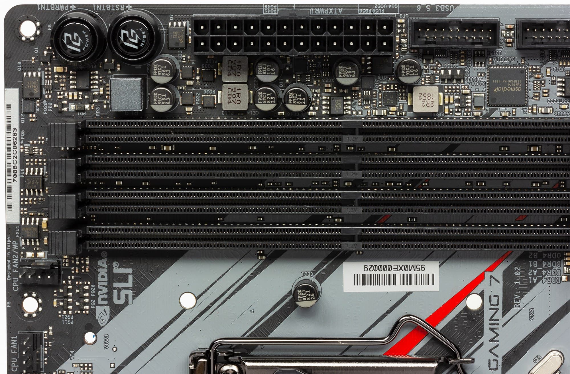 Для установки модулей памяти на плате ASRock имеется четыре DIMM-слота (для работы памяти в Dual Channel в случае использования всего 2 модулей их следует устанавливать в А2 и B2. Плата поддерживает небуферизованную память DDR4 (non-EСС), а максимальный объем памяти составляет 128 ГБ (при использовании UDIMM последнего поколения по 32 ГБ). Разумеется, поддерживаются профили XMP.