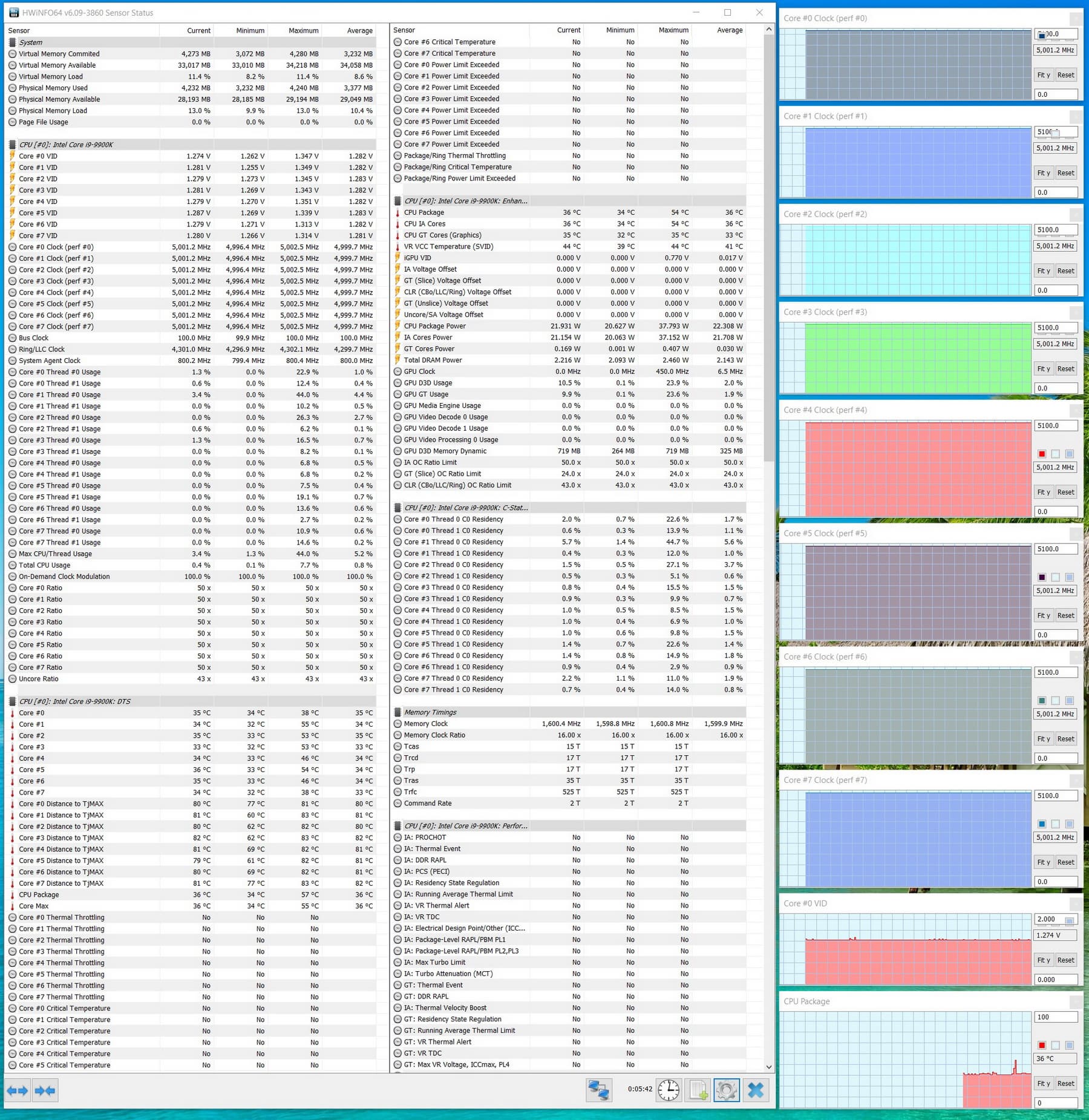 Внедряться в эти «дебри» не будем, ибо, во-первых, не такая «расфуфыренная» материнка, чтобы влезать в такое, во-вторых,.. ну все равно бесполезно: наш экземпляр i9-9900K все равно максимум на что способен, так это 5 ГГц на всех ядрах (хоть и за это спасибо, а то полно отзывов, что выше 4.9 ГГц никак), и это при самых продвинутых «водянках-все-в-одном». А это получается и без «пимпочек».