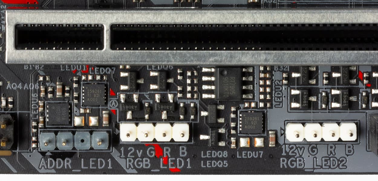 Опять же, геймерская серия, хоть и не самая флагманская, довольно богато оснащена подсветкой (о ней позже), а также есть возможности по подключению RGB-подсветки.