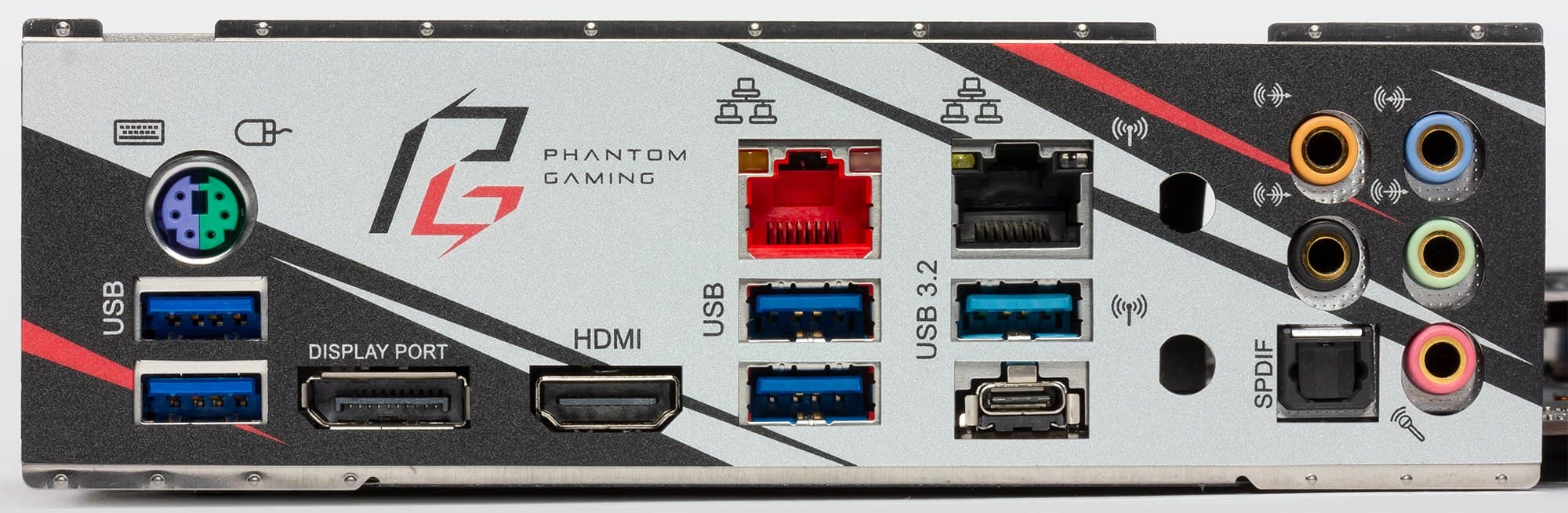 Если по слотам PCI-E, M,2 — плата как-то соответствует топовым сериям, то по набору USB-портов явно дано понять, что это все же «середняк». Впрочем, 2 сетевых контроллера (один из них высокоскоростной) все же подчеркивают, что перед нами серия Phantom Gaming.