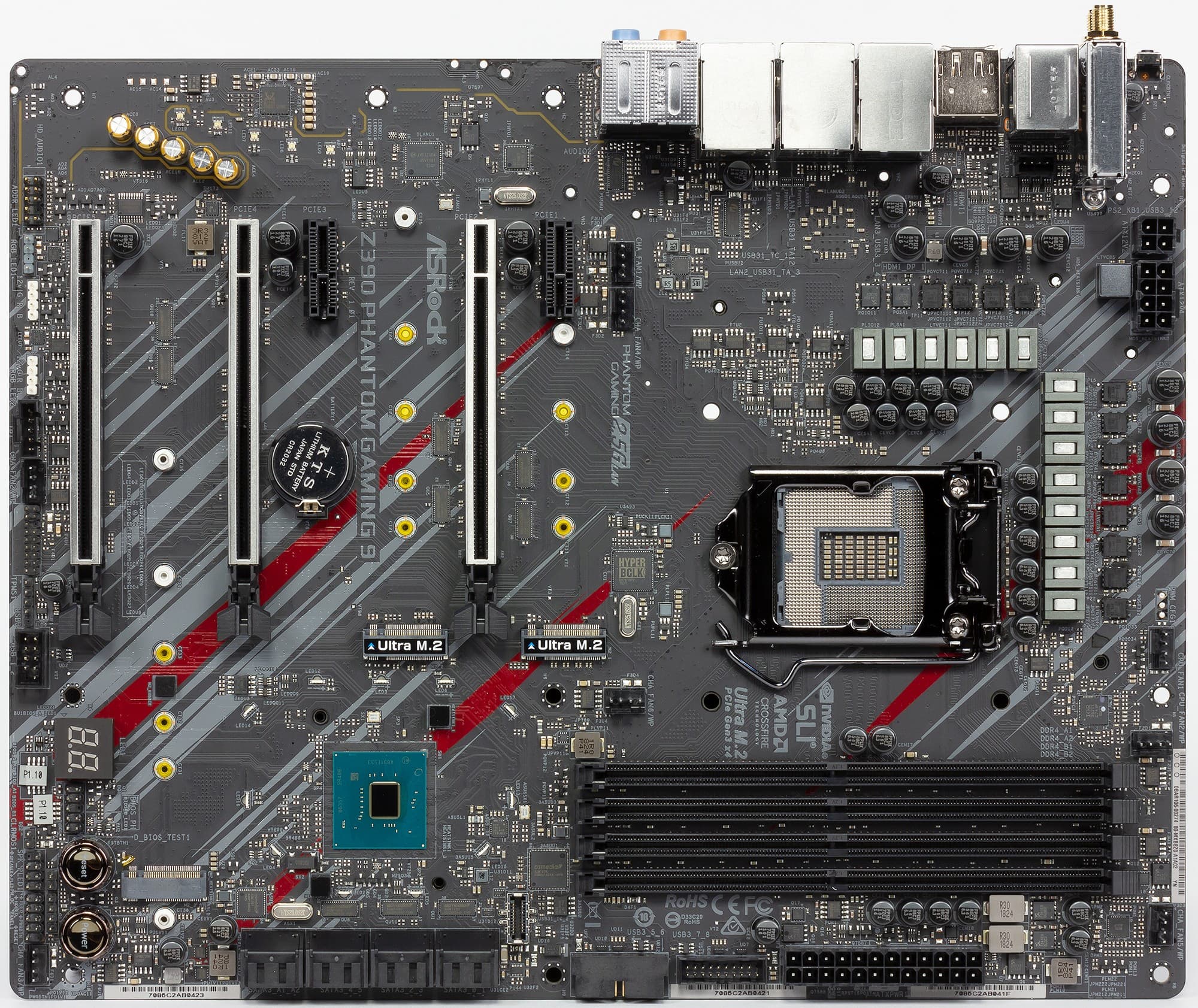 Ага, вот и первая разница: плата Phantom Gaming 9 обладает дополнительным сетевым контроллером. Разумеется, ниже мы о нем расскажем.