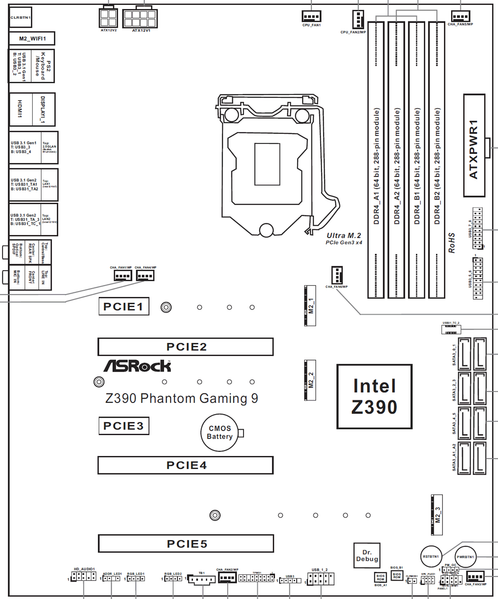 ASRock Z390 Phantom Gaming 9 поддерживает процессоры Intel Core 8-го и 9-го поколений, выполненные под разъем (сокет) LGA1151v2. Хотя физически отличий от старого LGA1151 нет, работать новые процессоры в LGA1151v1 не будут. Поэтому еще раз напомню: только модели с индексом 8000 и 9000!
