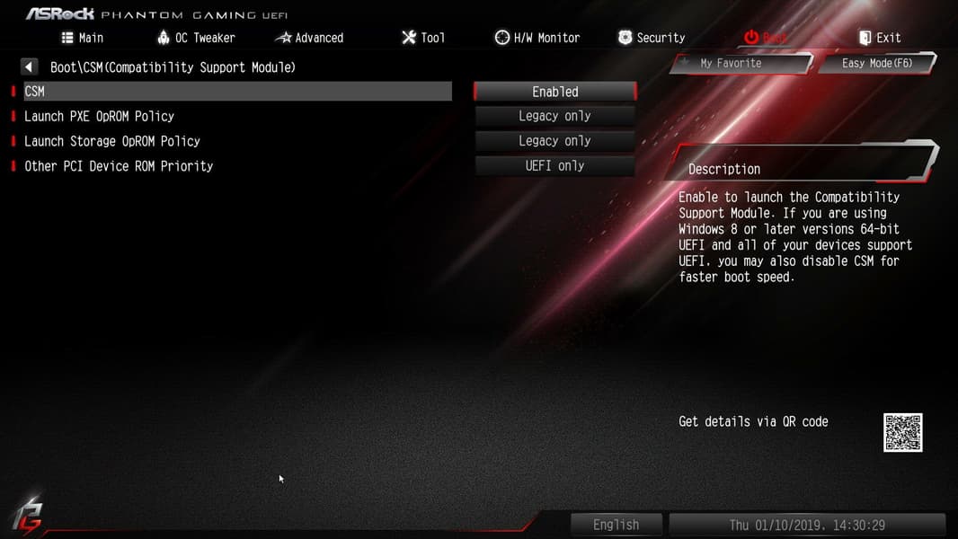 Я специально остановился на этом пункте меню. Это режим совместимости с накопителями (SSD/HDD), размеченными по старой схеме MBR (когда «видны» накопители емкостью до 2 ГБ), тогда как современные системы формируют таблицы размещения разделов согласно GPT. Логично, что по умолчанию этот пункт включен, и проблем быть не должно. Однако на ряде материнских плат, например Asus Strix Z390-E, этот параметр по умолчанию выключен! И можно сильно переволноваться, если подключить к такой материнке загрузочный (размеченный с MBR) накопитель с Windows, с которого ничего не будет грузиться.