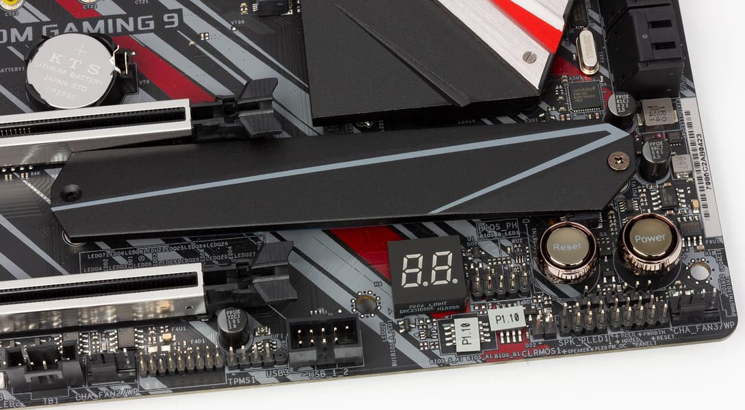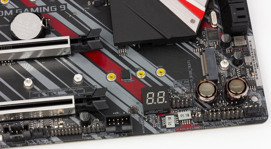 На фото выше можно заметить табло для отображения POST-кодов. Если некорректно вставить модули памяти или видеокарта как-то криво войдет в слот, этот вариант диагностики может пригодиться... Если причиной проблем оказывается разгон, есть удобная кнопка очистки CMOS на задней панели, а также вторая копия UEFI (BIOS). Также очень удобными являются физические кнопки перезагрузки компа Reset и включения Power. Все тестеры очень благодарят производителей «матерей» за наличие таких деталей. Кстати, это первое отличие платы от Z390 Taichi (там таких кнопок нет).