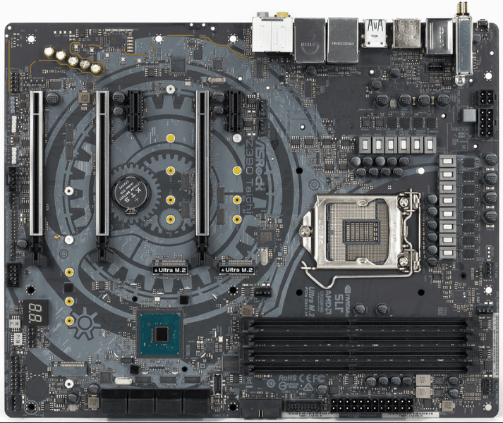 Чипсет Z390 поддерживает до 30 линий (портов) ввода-вывода, из которых до 24 отводится на PCI-E 3.0, всего может быть до 6 портов SATA 6 Гбит/с и суммарно до 14 портов USB 3.1/3.0/2.0.