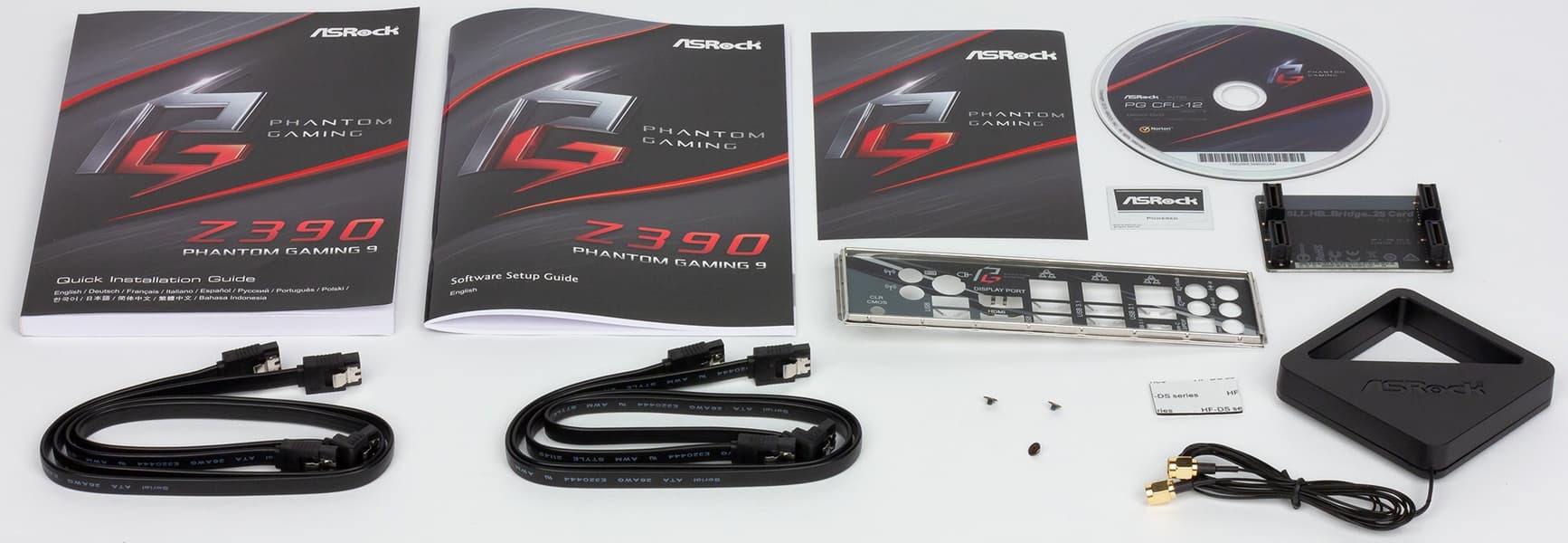 Как ни странно, комплект поставки до боли напоминает Z390 Taichi. А где же какие-нибудь «ништячки», с помощью которых потребитель поймет, что у него в руках флагманский продукт? Неужели все сокровища — «внутри материнки»? Как-то даже немного разочарован. Впрочем, еще раз скажу, что меня удивляют цены материнских плат ASRock: Phantom Z390 Gaming 9 стоит ровно столько же, сколько Z390 Taichi UIltimate, и лишь немного дороже Z390 Taichi. То есть перед нами флагман, но со средней для материнских плат на Z390 ценой — около 20 тысяч рублей. И это при том, что на рынке есть платы на том же чипсете аж за 40 тысяч. (Как имеются и модели на том же Z390 за 10 тысяч рублей.)