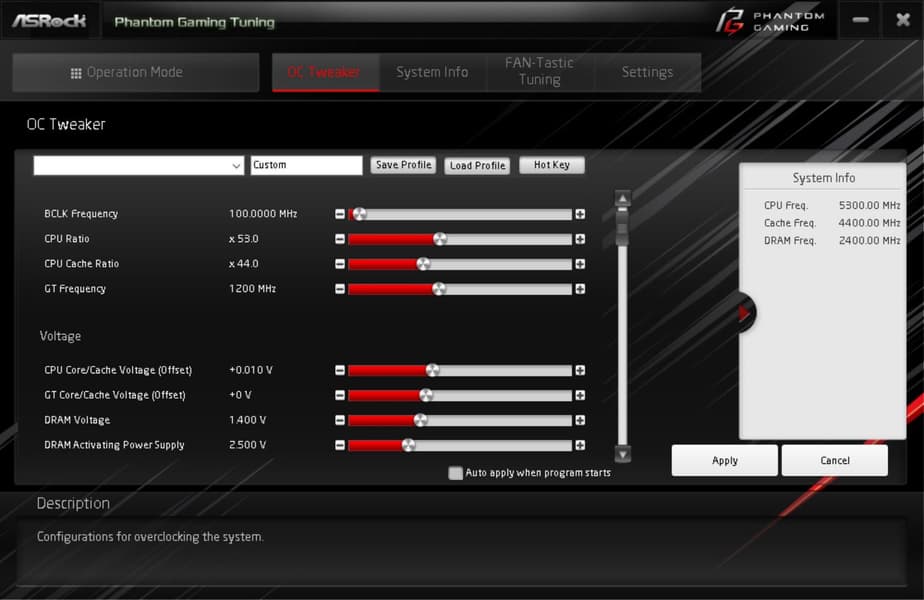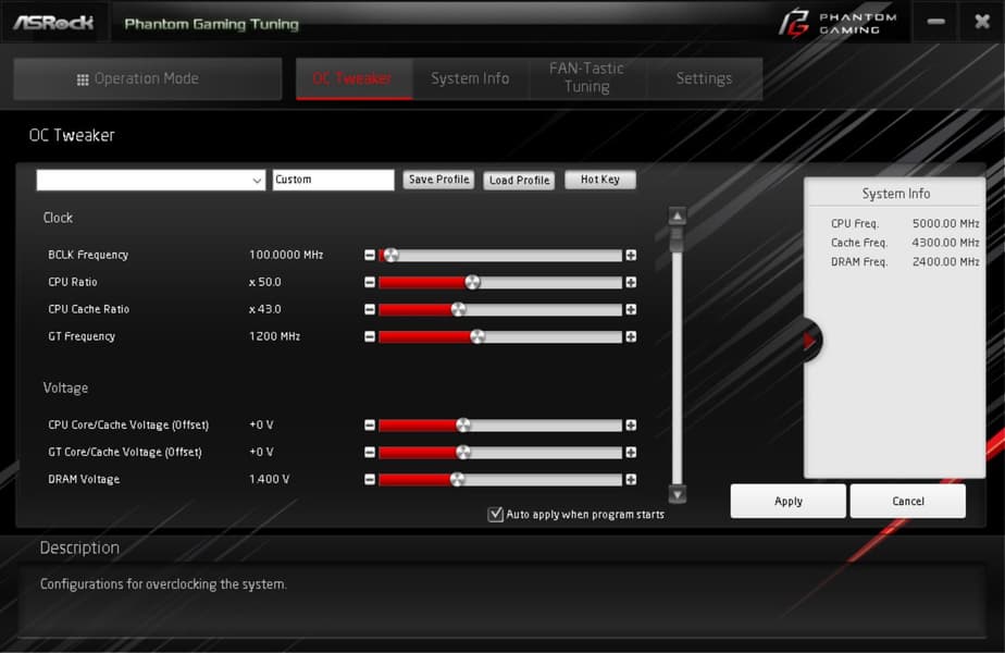 Возможности для разгона тут более широкие, чем через ранее упомянутую программу ASRock Phantom Gaming Tuning.