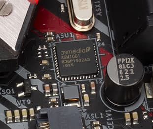 На картинке справа дополнительные 4 внутренних порта USB 3.1 Gen1, которые реализованы через контроллер ASMedia ASM1074.