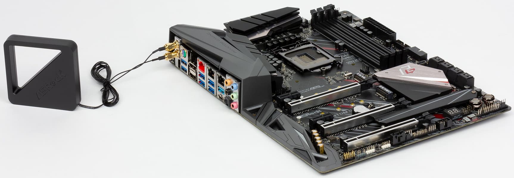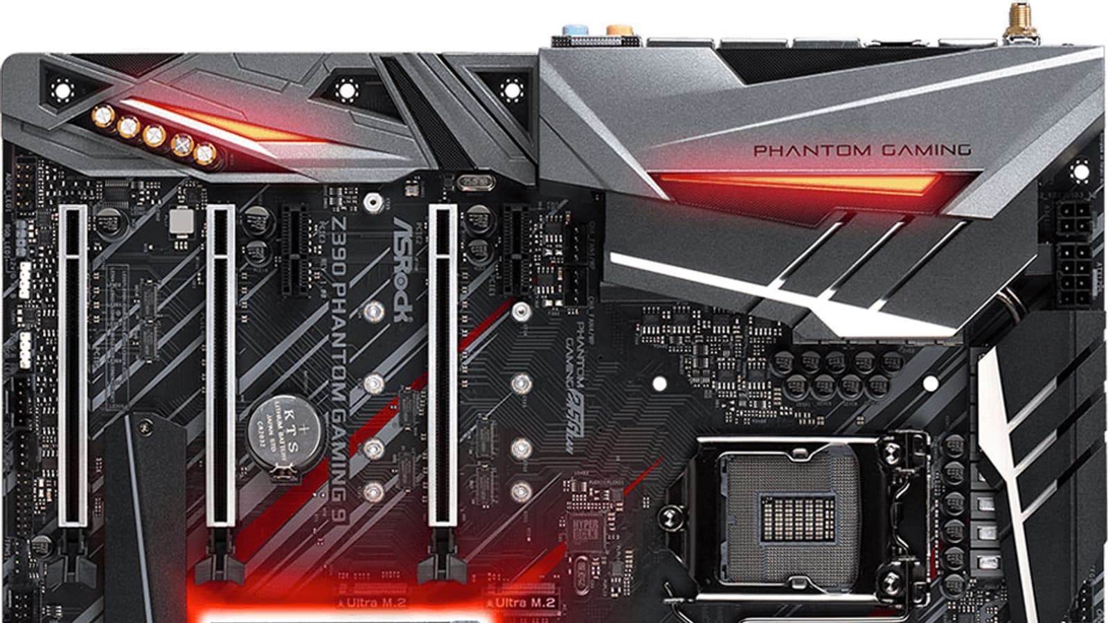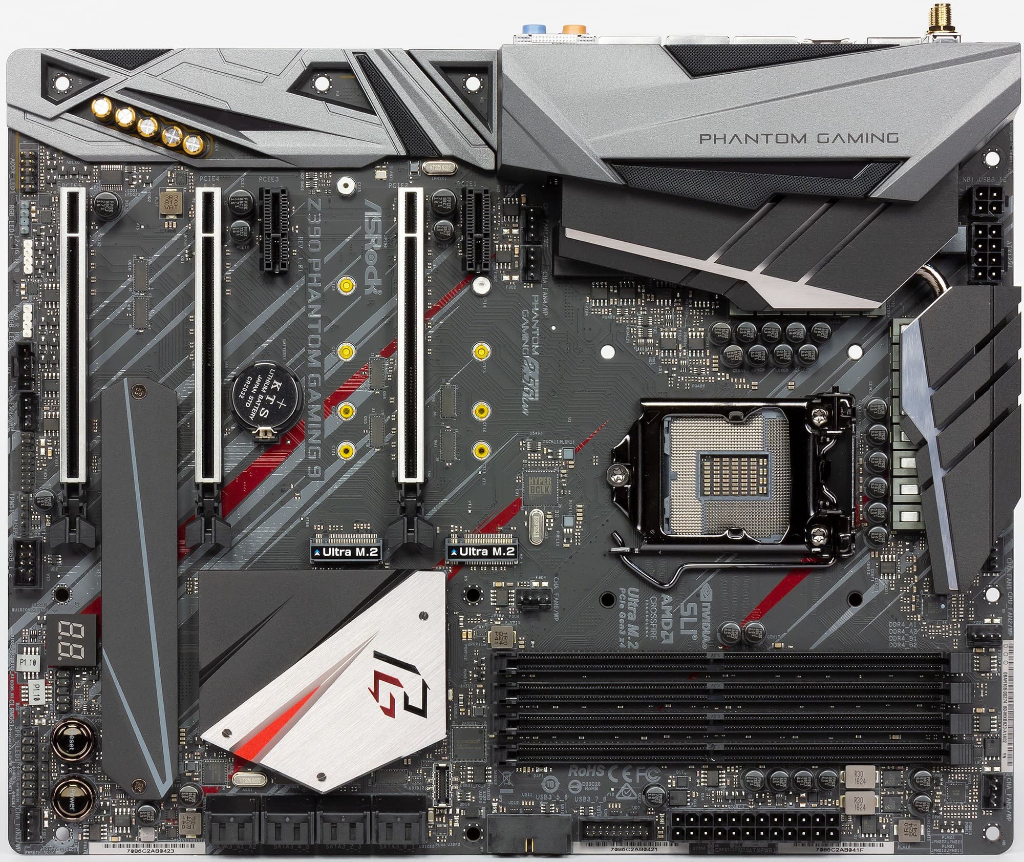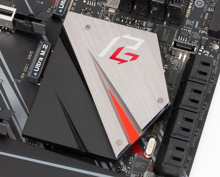 Чипсет имеет большой радиатор, однако уже не округлой формы с шестернями, как у Z390 Taichi, а многоугольной со стилистическими острыми вырезами в соответствии с дизайном Phantom Gaming.