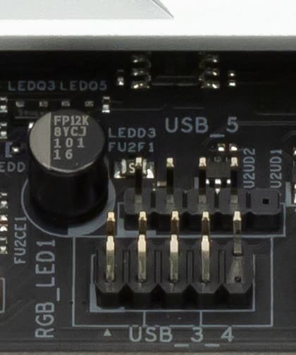 - 6 портов USB 3.1 Gen1: реализованы через Z390 и представлены 2 портами Type-A на задней панели (синего цвета) и 2 внутренними разъемами на материнской плате (каждый на 2 порта);