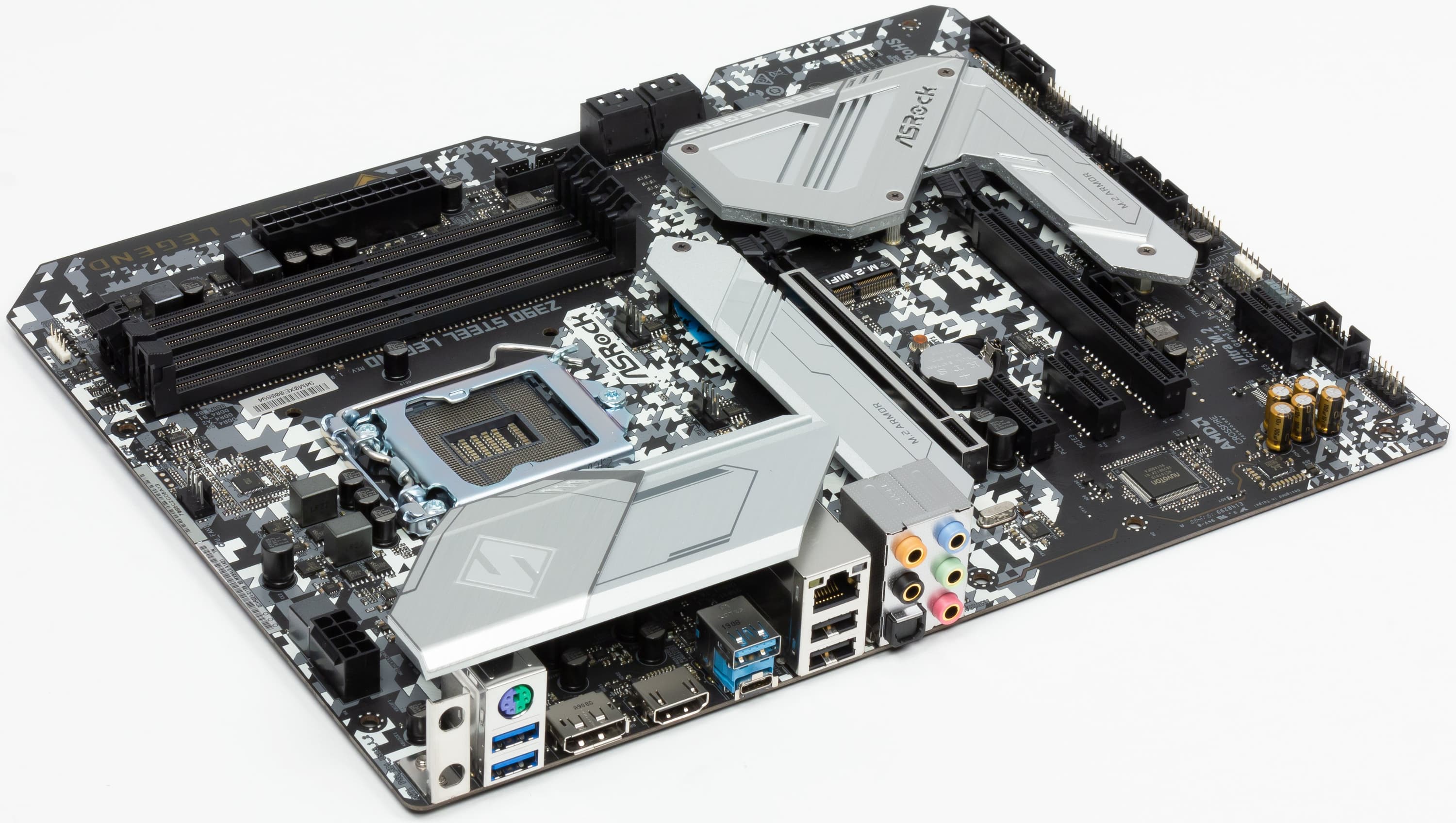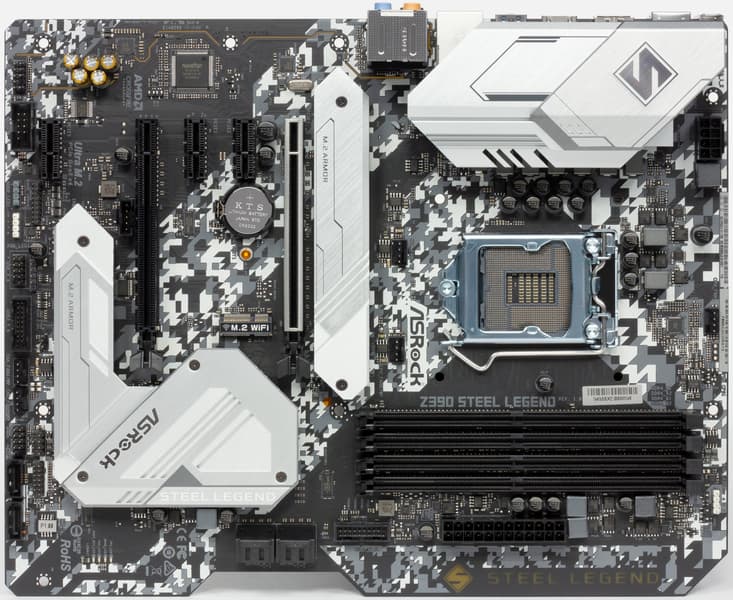 Как и все аналоги на Z390, ASRock Z390 Steel Legend поддерживает процессоры Intel Core 8-го и 9-го поколений, выполненные под разъем (сокет) LGA1151v2. Хотя физически отличий от старого LGA1151 нет, старые процессоры в LGA1151 v2 работать не будут. Поэтому еще раз напомню: только модели с индексами 8000 и 9000!
